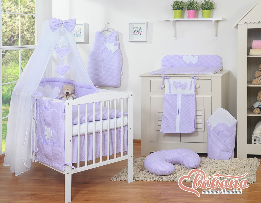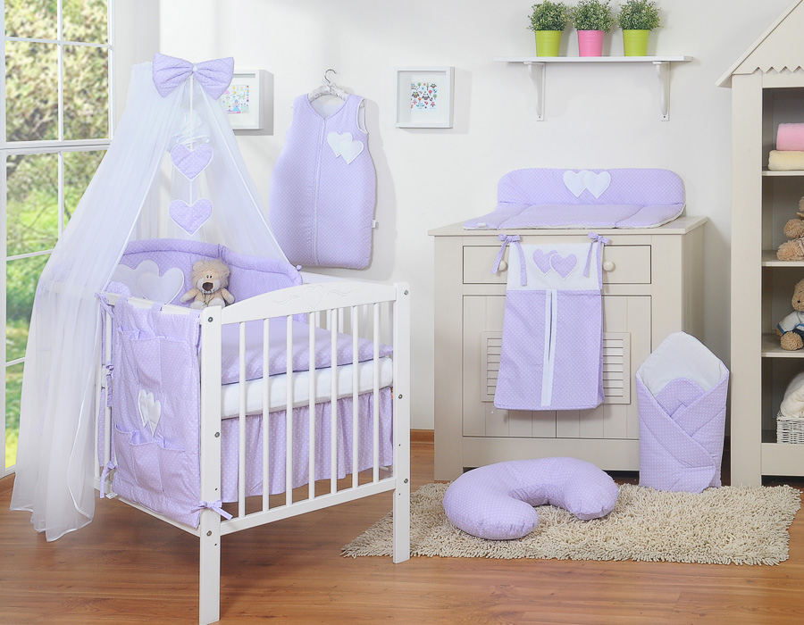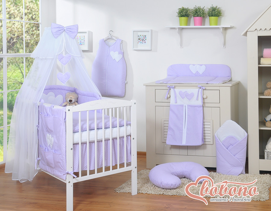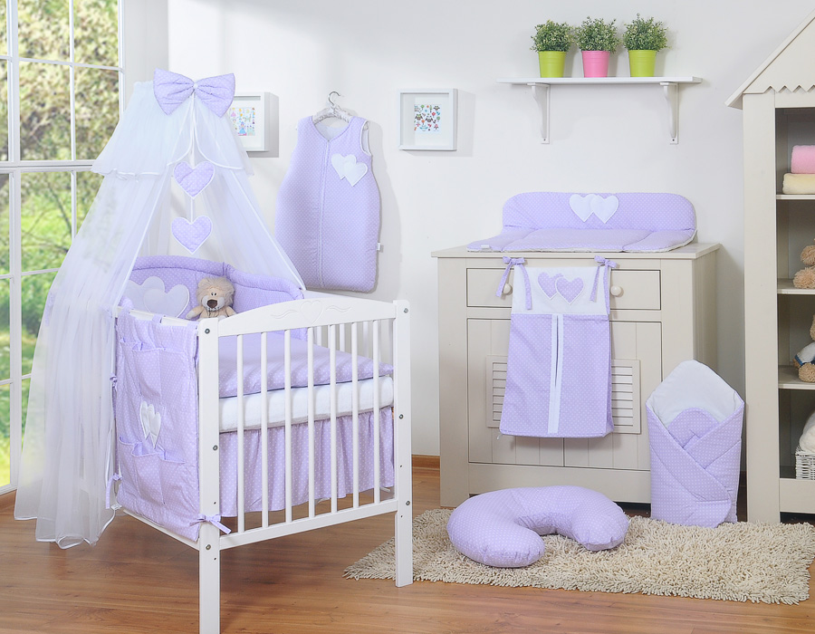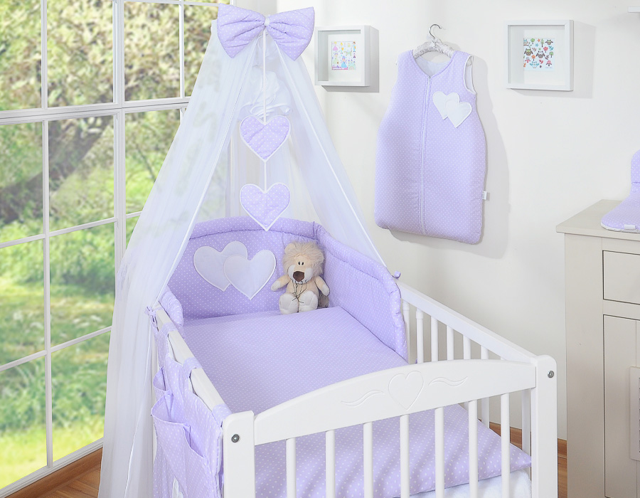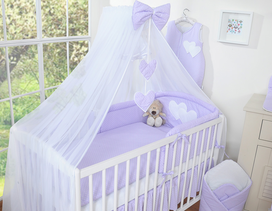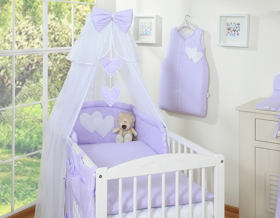 Bébé chambre » Linge de lit bébé » Linge de lit bébé Cœurs » Linge de lit bébé 120cm Cœurs » Ensemble de linge de lit 5 pcs avec moustiquaire » Ensemble de Linge de Lit 5 pcs avec Moustiquaire Lila à Pois Cœurs