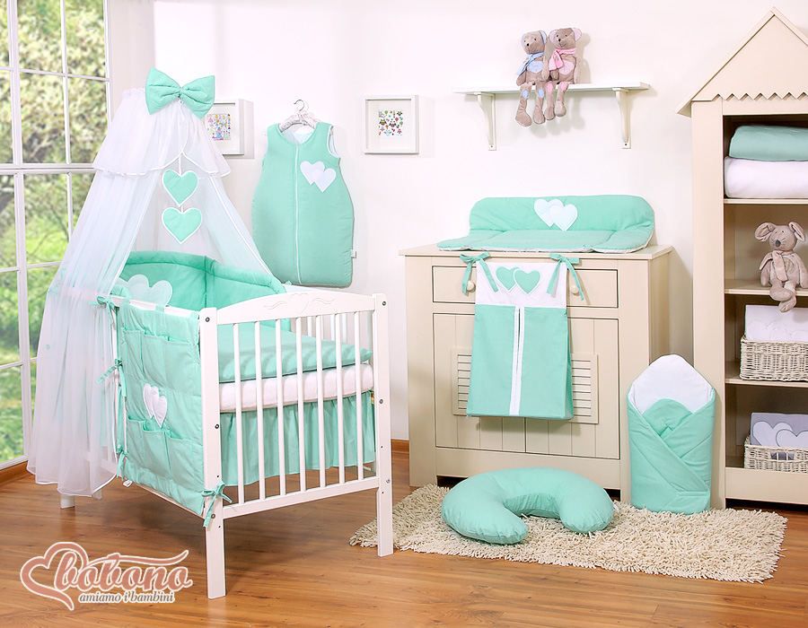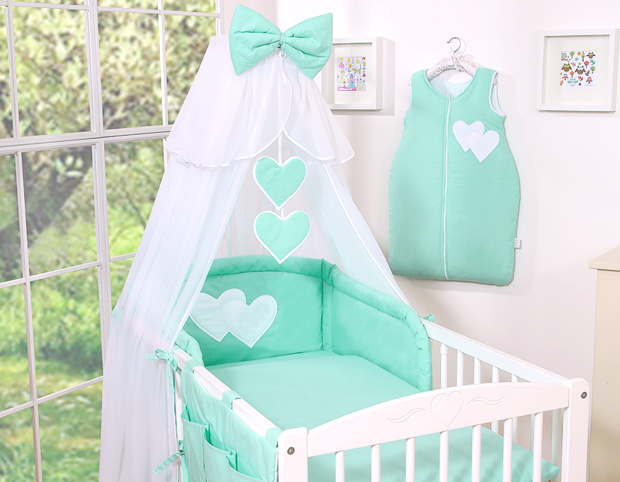 Bébé chambre » Linge de lit bébé » Linge de lit bébé Cœurs » Linge de lit bébé 120cm Cœurs » Ensemble de linge de lit 5 pcs avec moustiquaire » Ensemble de Linge de Lit 5 pcs avec Moustiquaire Menthe Cœurs