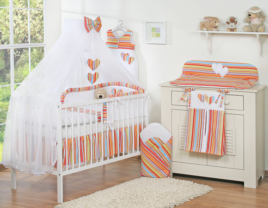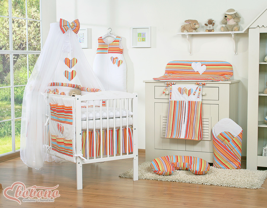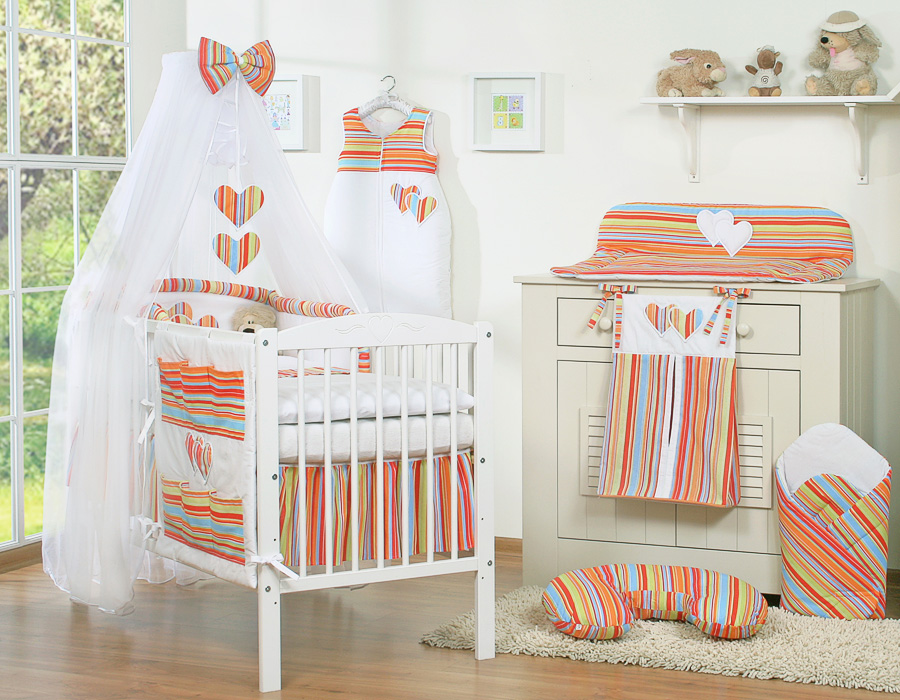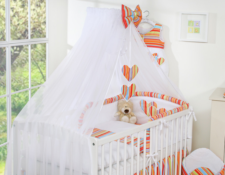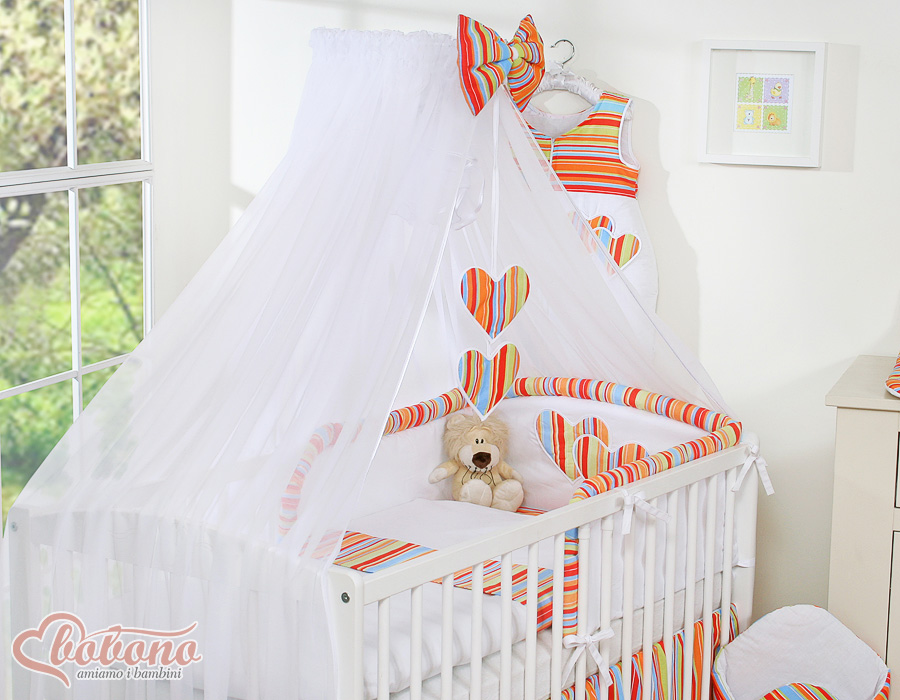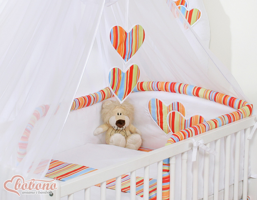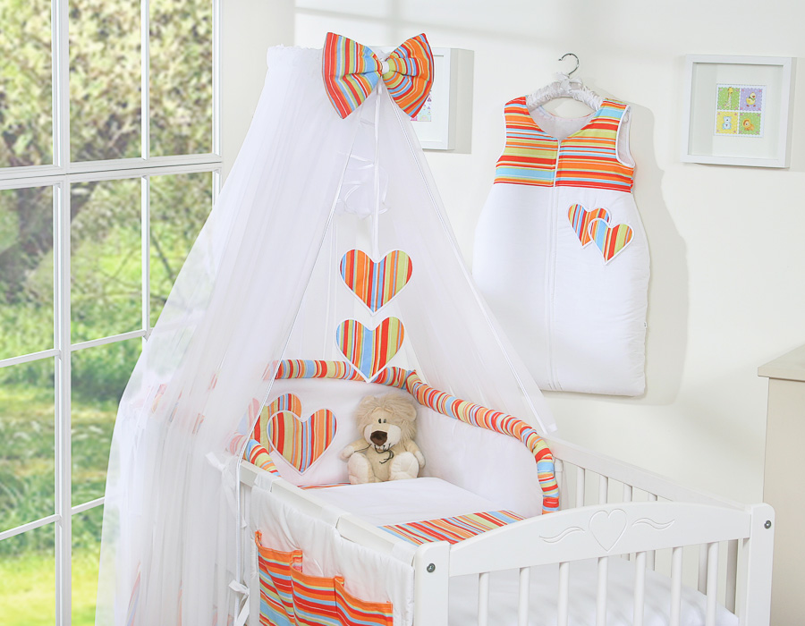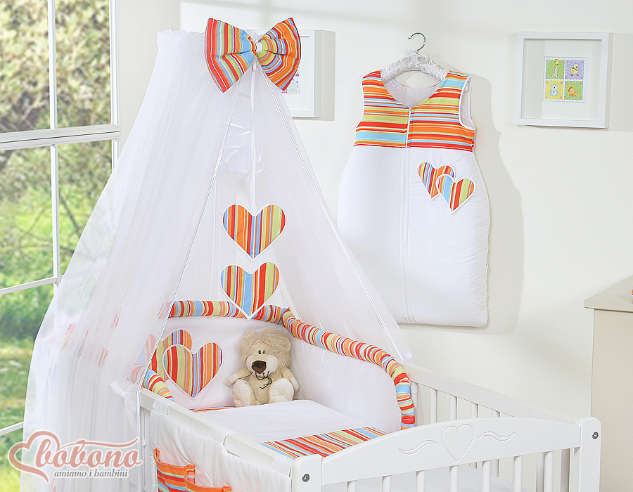 Bébé chambre » Linge de lit bébé » Linge de lit bébé Cœurs » Linge de lit bébé 120cm Cœurs » Ensemble de linge de lit 5 pcs avec moustiquaire » Ensemble de Linge de Lit 5 pcs avec Moustiquaire Orange Rayures Cœurs