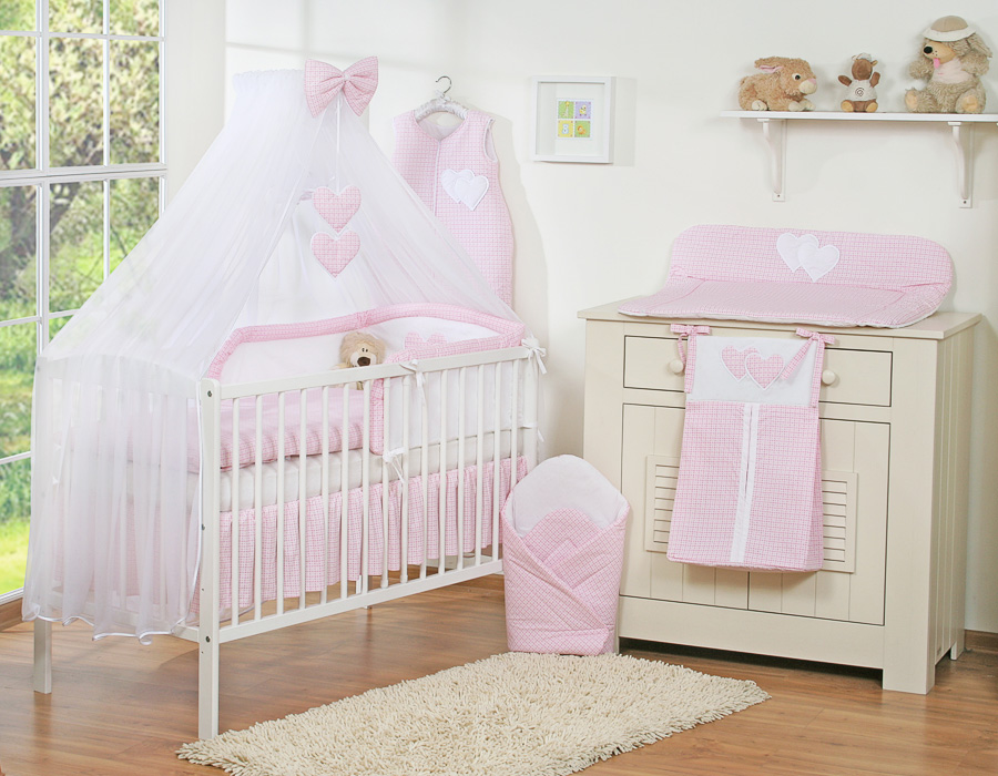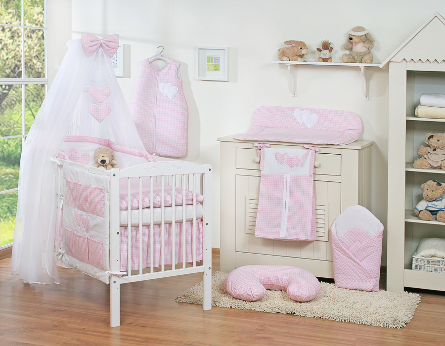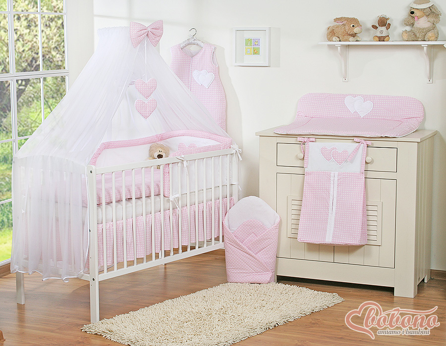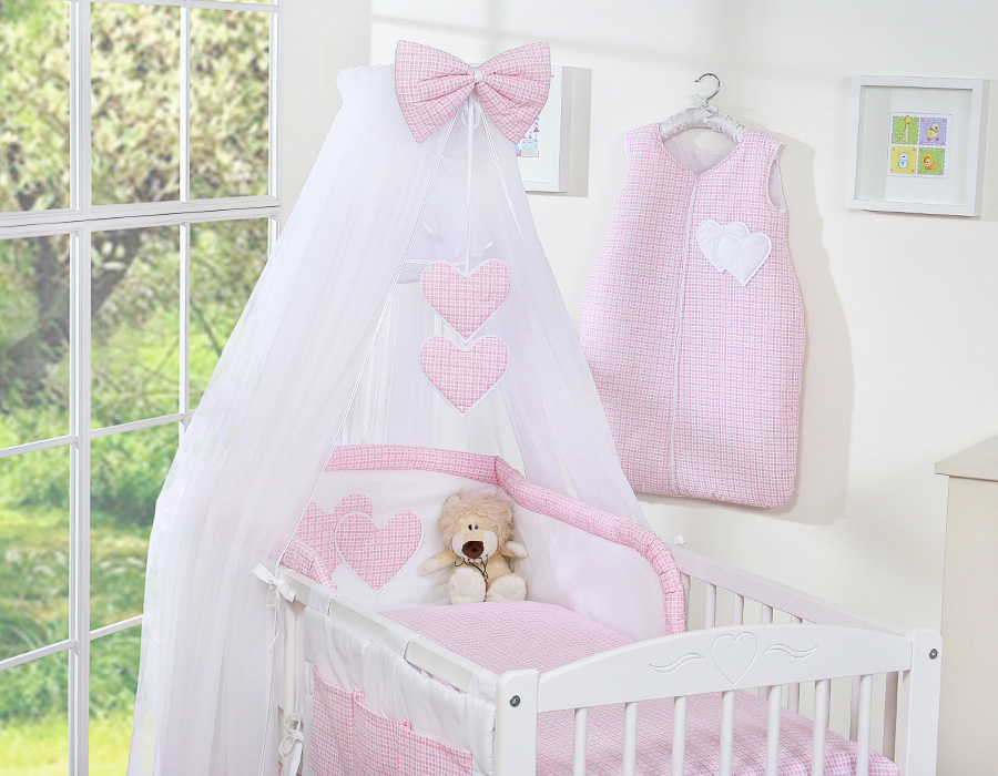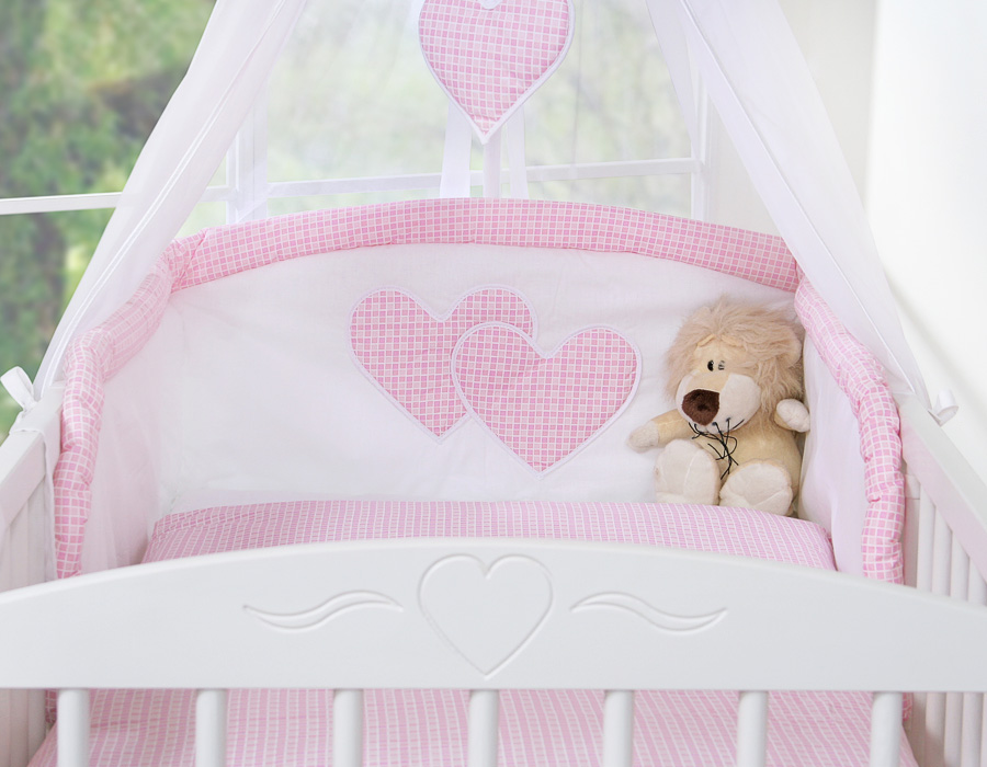 Bébé chambre » Linge de lit bébé » Linge de lit bébé Cœurs » Linge de lit bébé 120cm Cœurs » Ensemble de linge de lit 5 pcs avec moustiquaire » Ensemble de Linge de Lit 5 pcs avec Moustiquaire Rose à Carreaux Cœurs