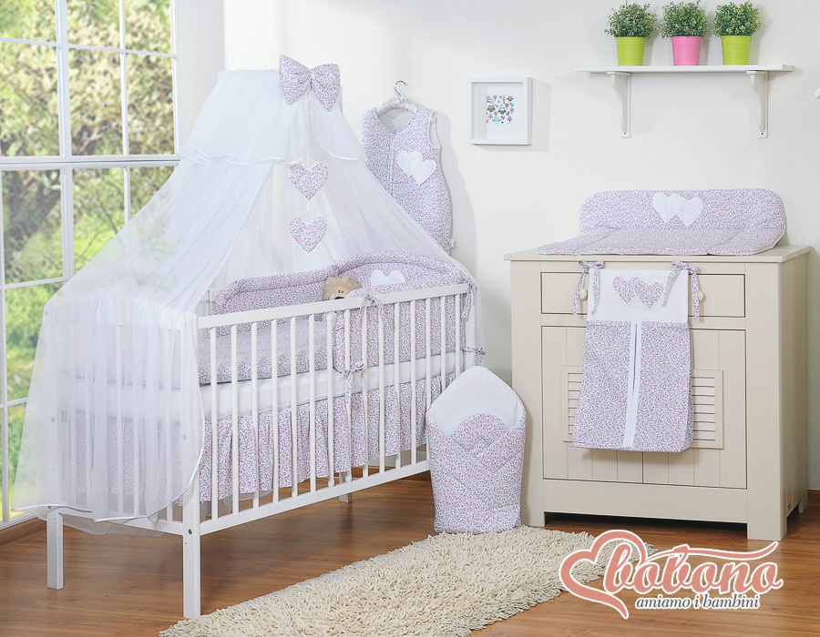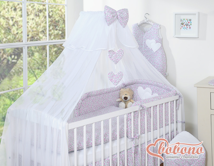 Bébé chambre » Linge de lit bébé » Linge de lit bébé Cœurs » Linge de lit bébé 120cm Cœurs » Ensemble de linge de lit 5 pcs avec moustiquaire » Ensemble de Linge de Lit 5 pcs avec Moustiquaire Rose Fleurs Cœurs