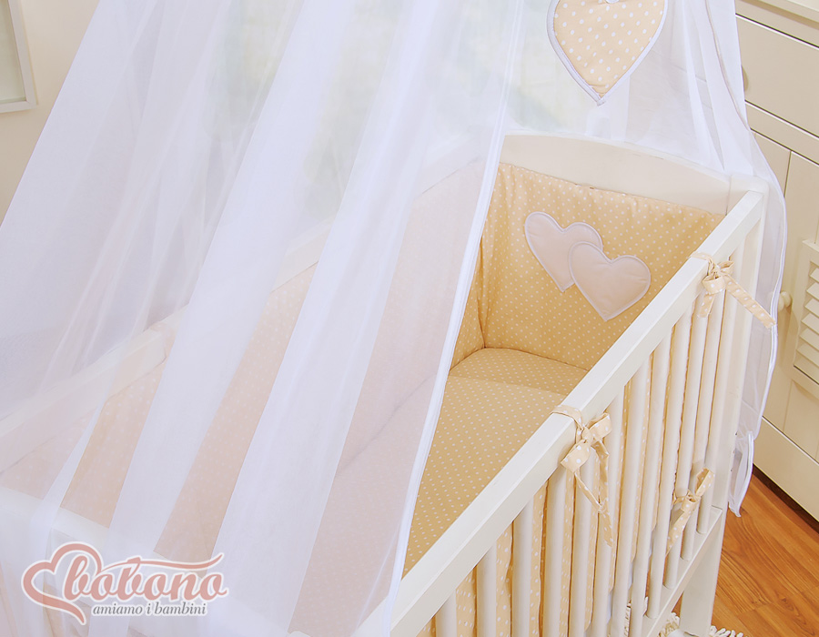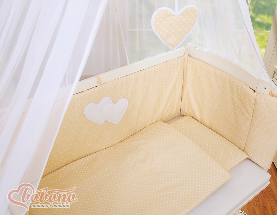 Bébé chambre » Lits bébé 120x60 cm » Lits de cododo » Ensemble de linge de lit pour lit de cododo » Ensemble de Linge de Lit 6 pcs pour Lit de Cododo Beige à Pois Cœurs
