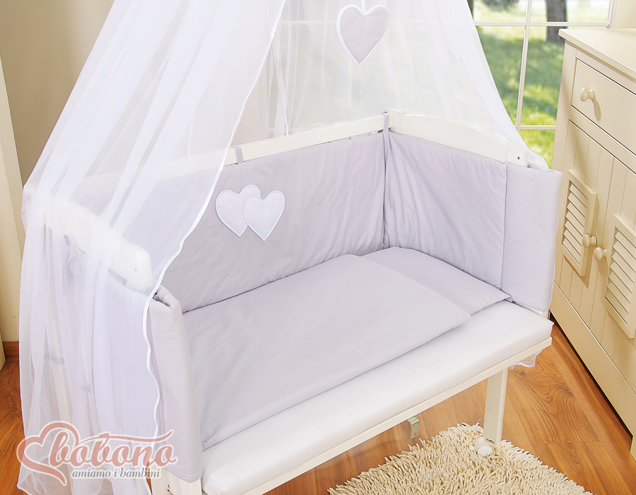 Bébé chambre » Lits bébé 120x60 cm » Lits de cododo » Ensemble de linge de lit pour lit de cododo » Ensemble de Linge de Lit 6 pcs pour Lit de Cododo Gris Cœurs