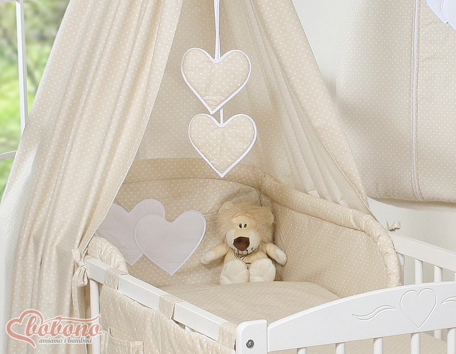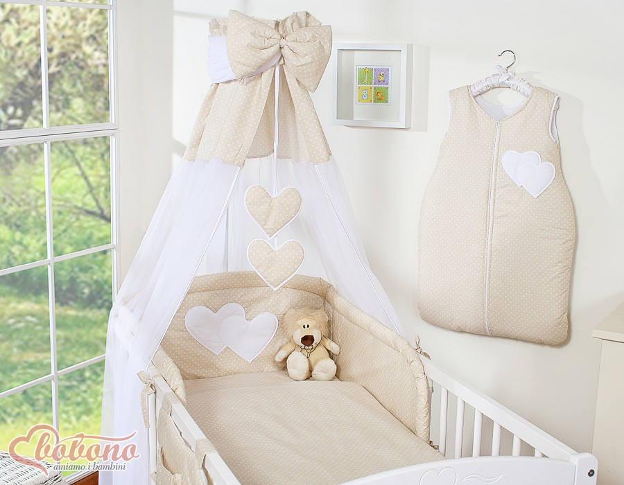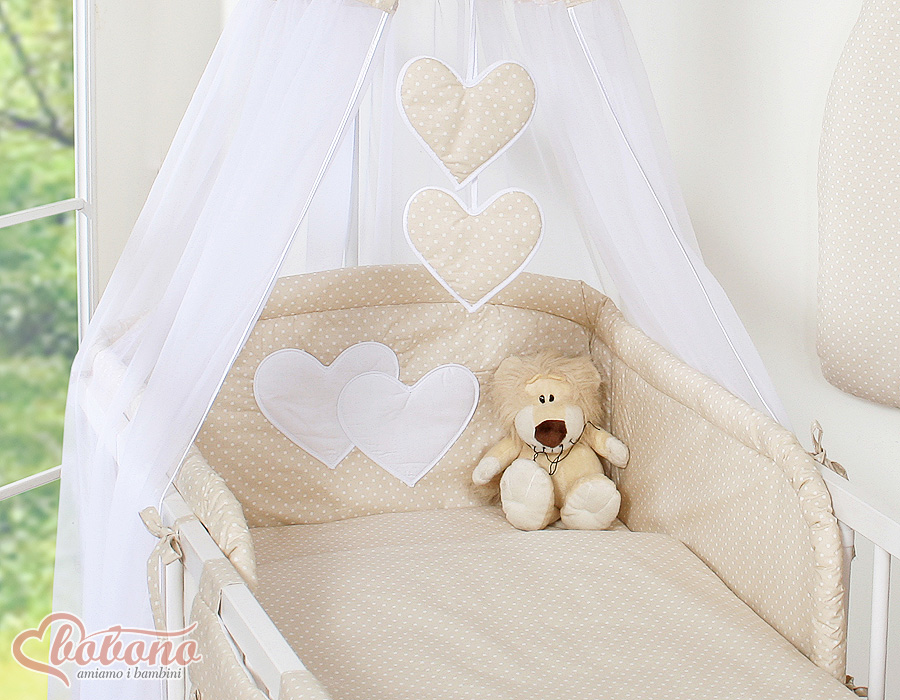 Bébé chambre » Linge de lit bébé » Linge de lit bébé Cœurs » Linge de lit bébé 140cm Cœurs » Ensemble de linge de lit 11 pcs avec ciel de lit » Ensemble de Linge de Lit Bébé 11 pcs Ciel Beige à Pois