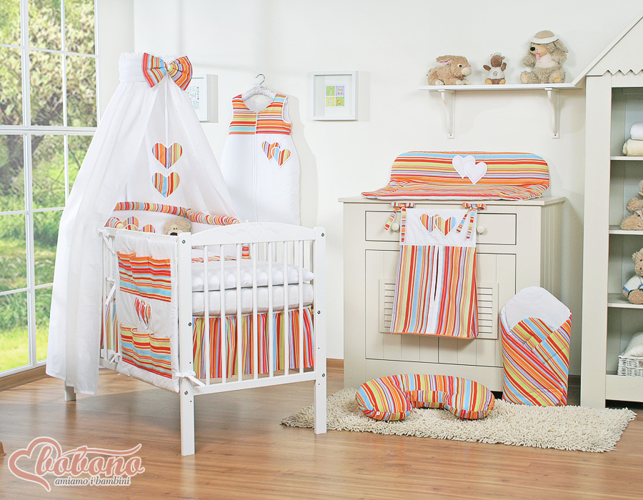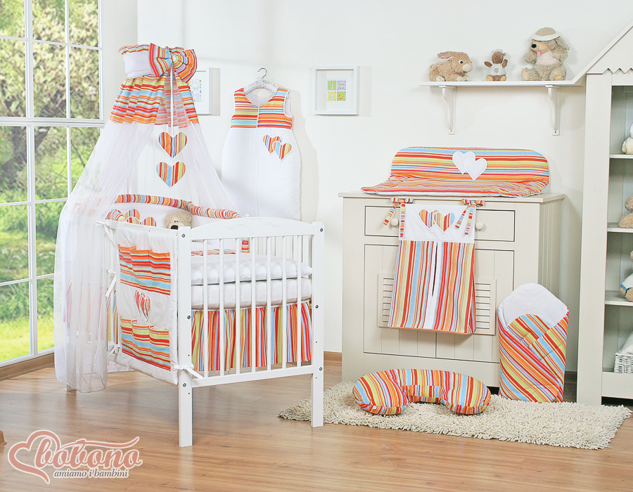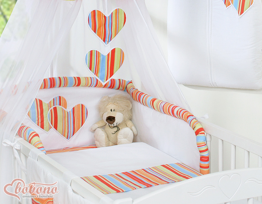 Bébé chambre » Linge de lit bébé » Linge de lit bébé Cœurs » Linge de lit bébé 140cm Cœurs » Ensemble de linge de lit 11 pcs avec ciel de lit » Ensemble de Linge de Lit Bébé 11 pcs Ciel Orange Rayures Cœurs