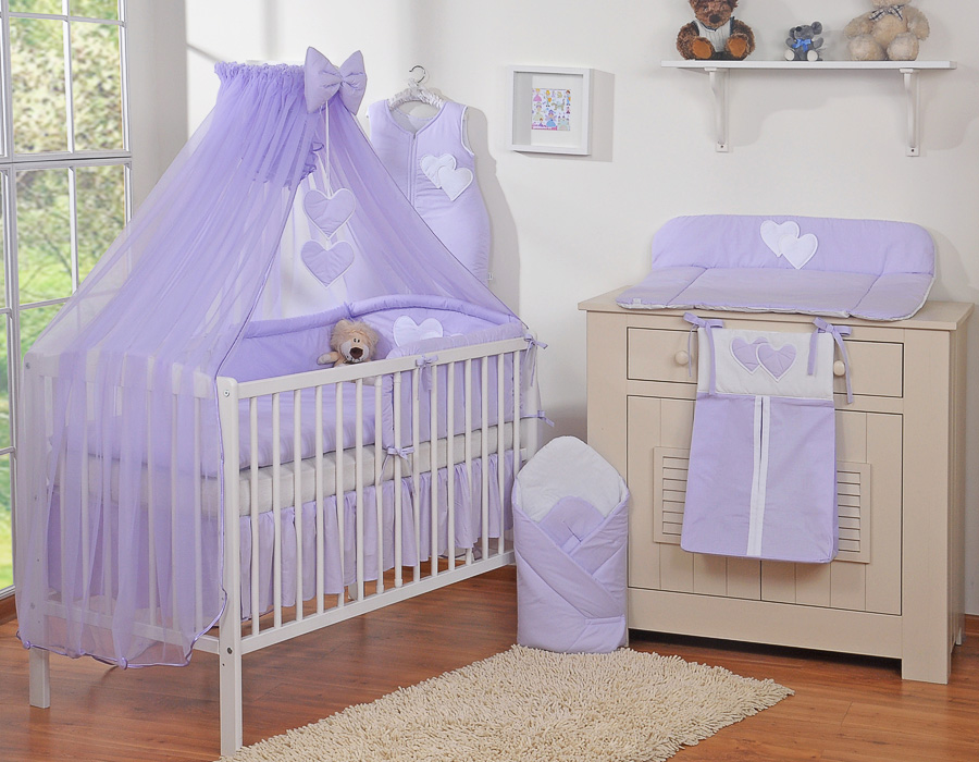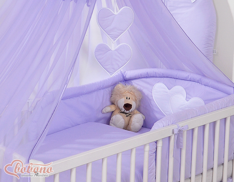 Bébé chambre » Linge de lit bébé » Linge de lit bébé Cœurs » Linge de lit bébé 120cm Cœurs » Ensemble de linge de lit 5 pcs avec moustiquaire » Ensemble de Linge de Lit Bébé 5 pcs avec Moustiquaire Lila Cœurs