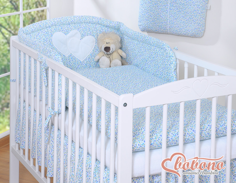 Ensemble de Linge de Lit pour Bébé 3 pcs Bleu Fleurs CœursEnsemble de Linge de Lit pour Bébé 3 pcs Bleu Fleurs Cœurs