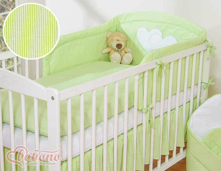 Bébé chambre » Linge de lit bébé » Linge de lit bébé Cœurs » Linge de lit bébé 120cm Cœurs » Ensemble de linge de lit 3 pcs » Ensemble de Linge de Lit pour Bébé 3 pcs Vert Rayures Cœurs