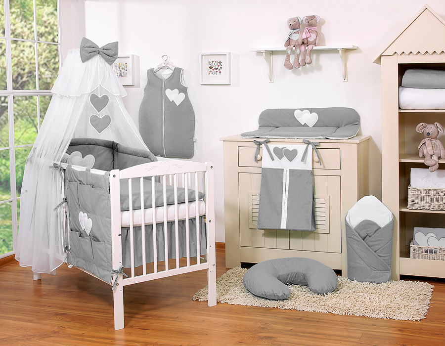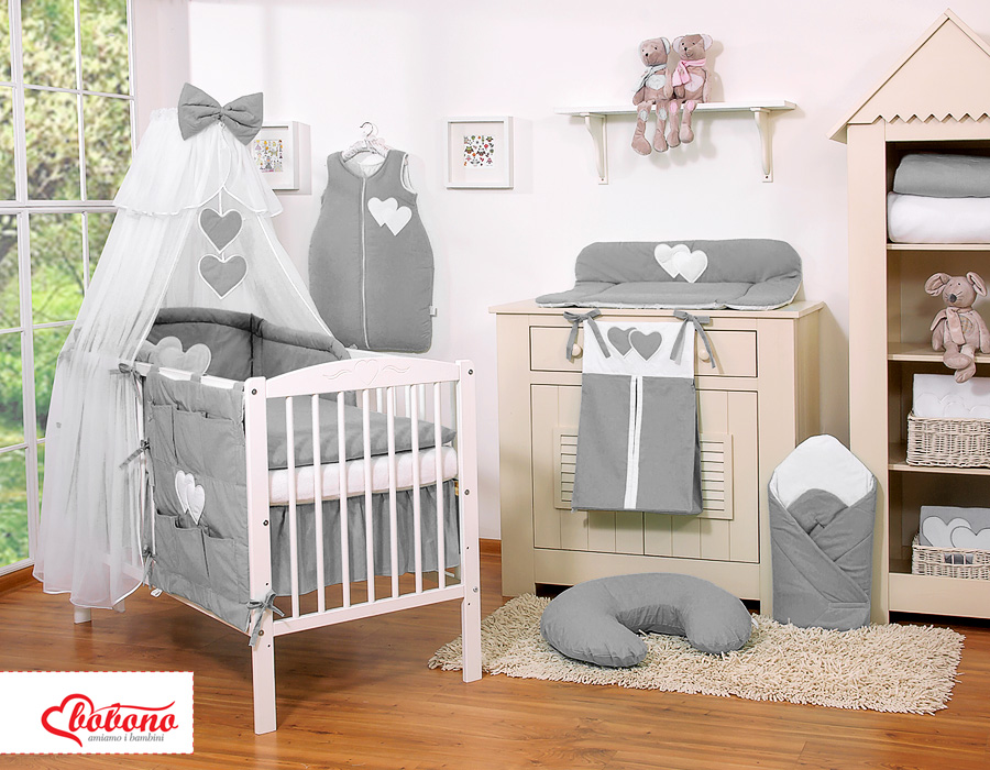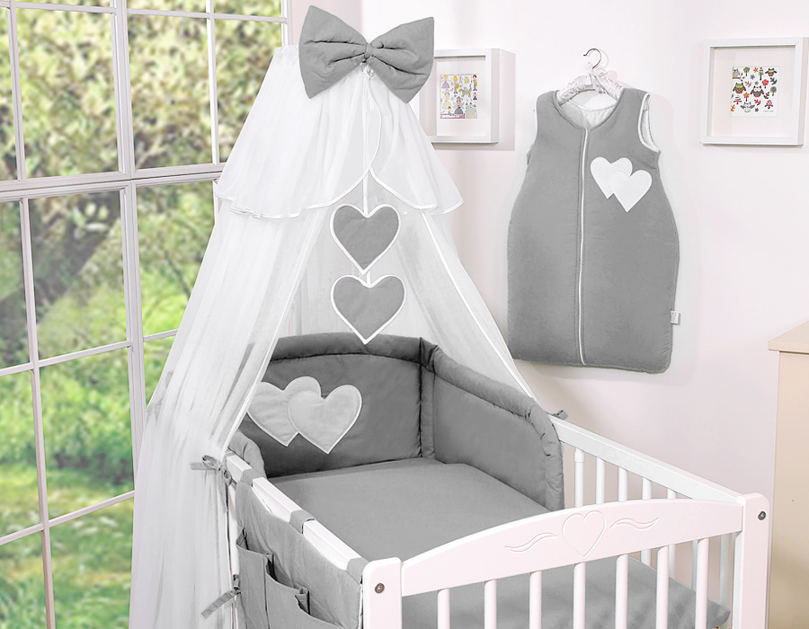 Ensemble de linge de lit pour bébé 7 pcs avec moustiquaire de lit bébé - Collection Cœurs
