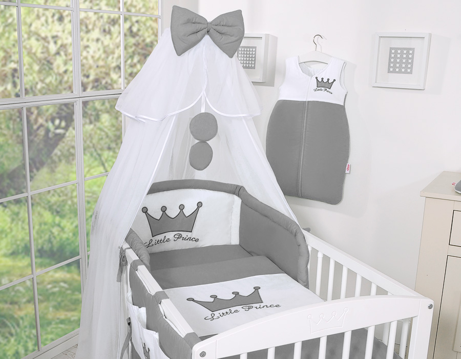 Bébé chambre » Linge de lit bébé » Linge de lit Little Prince / Princess » Linge de lit 120cm » 7pcs Ensemble Linge avec Moustiquaire et Tour de Lit » Ensemble de Linge de Lit pour Bébé 7 pcs avec Ciel Anthracite Prince / Princess