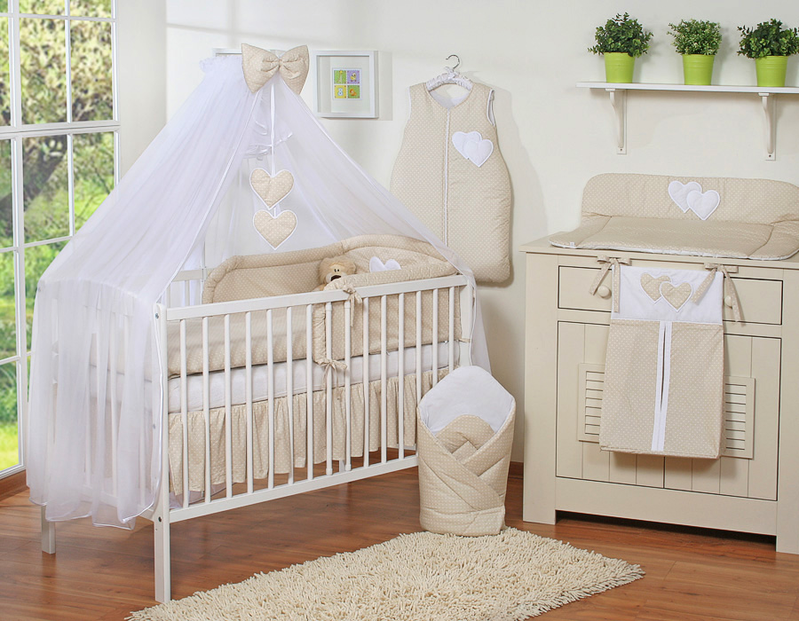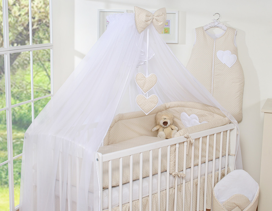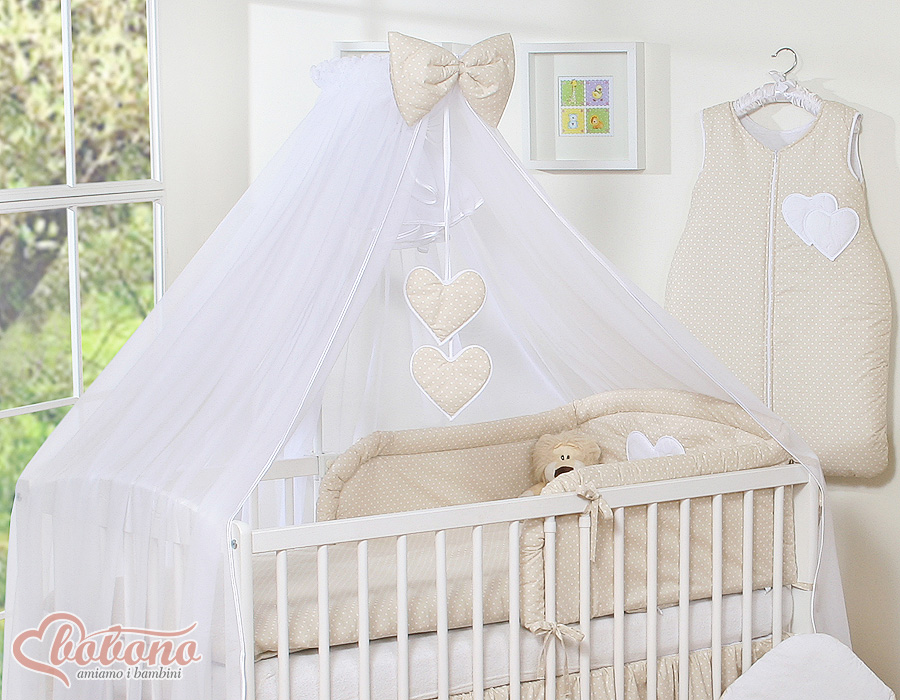 Bébé chambre » Linge de lit bébé » Linge de lit bébé Cœurs » Linge de lit bébé 120cm Cœurs » Ensemble de linge de lit 7 pcs avec moustiquaire » Ensemble de Linge de Lit pour Bébé 7 pcs avec Ciel Beige à Pois Cœurs