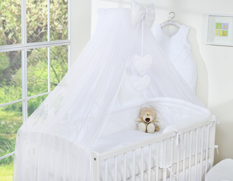 Bébé chambre » Linge de lit bébé » Linge de lit bébé Cœurs » Linge de lit bébé 120cm Cœurs » Ensemble de linge de lit 7 pcs avec moustiquaire » Ensemble de Linge de Lit pour Bébé 7 pcs avec Ciel Blanc Cœurs