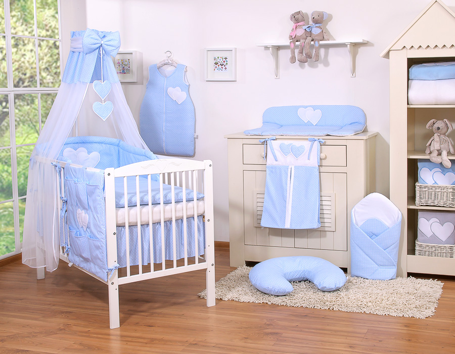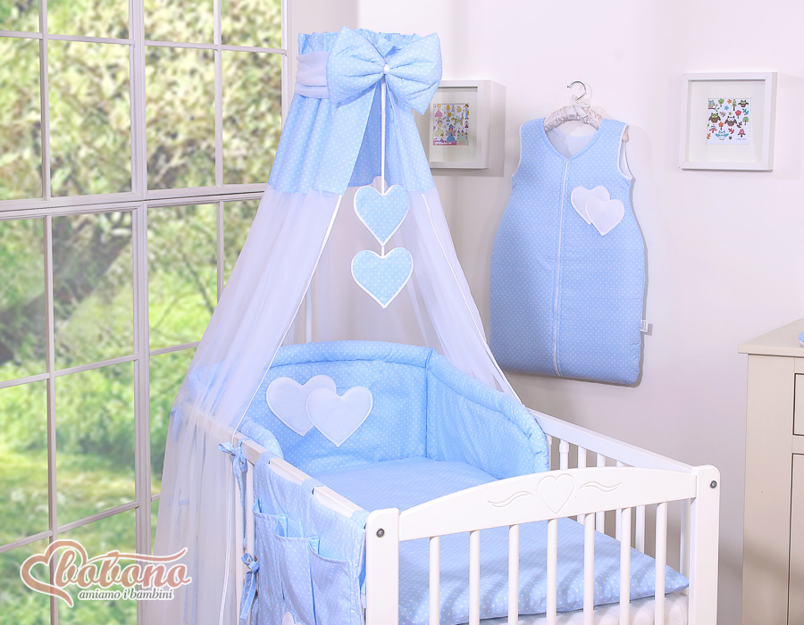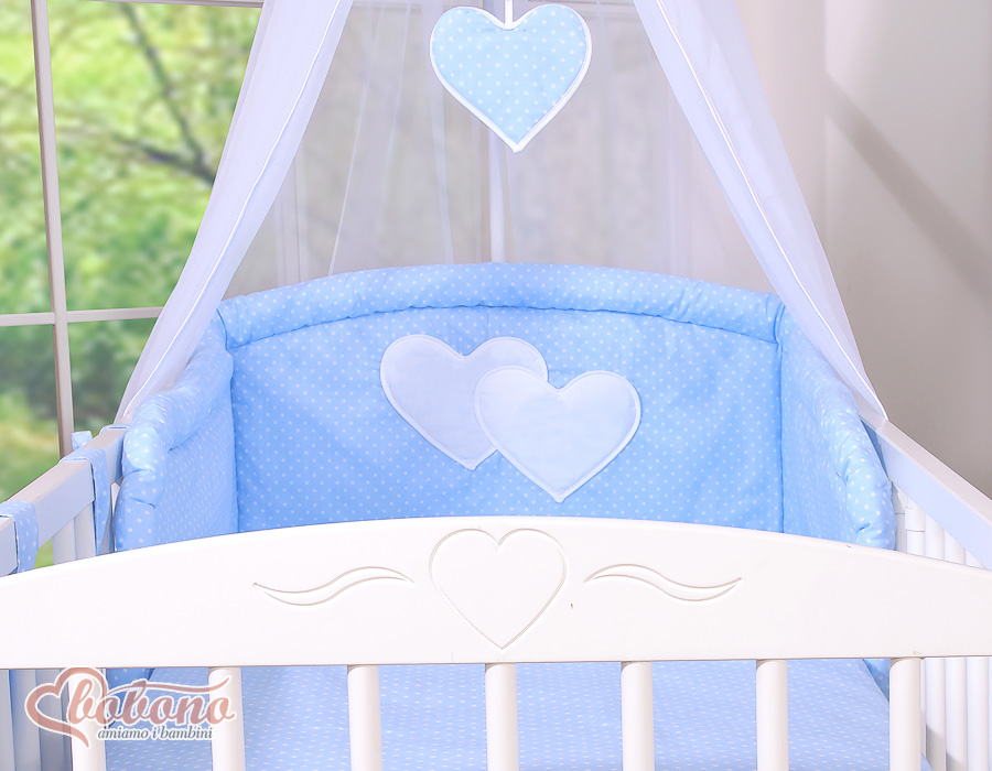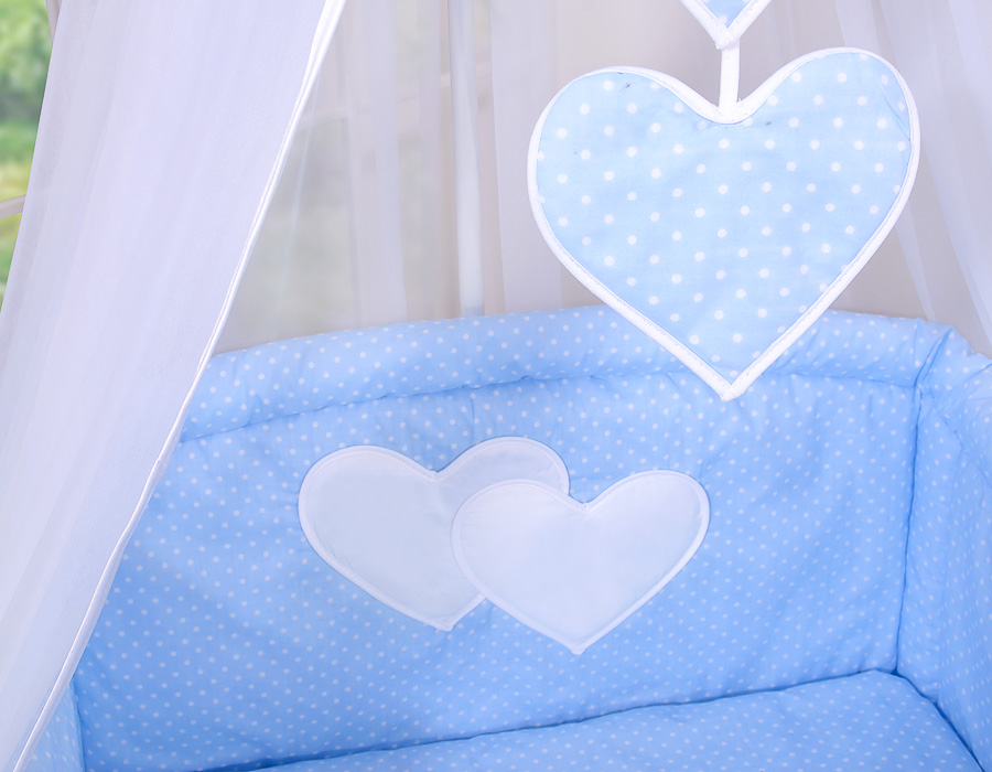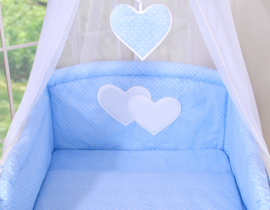 Bébé chambre » Linge de lit bébé » Linge de lit bébé Cœurs » Linge de lit bébé 140cm Cœurs » Ensemble de linge de lit 7 pcs avec ciel » Ensemble de Linge de Lit pour Bébé 7 pcs avec Ciel Bleu à Pois Cœurs