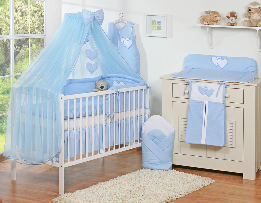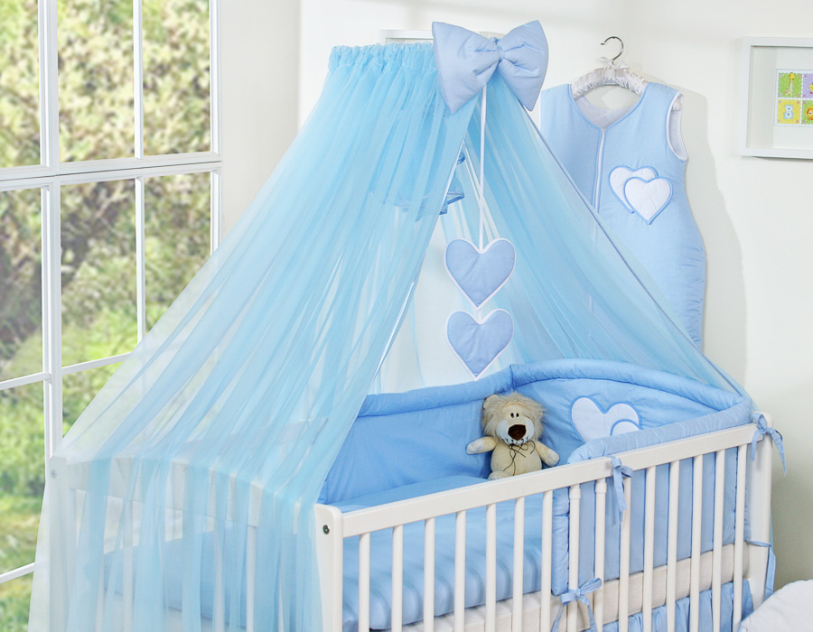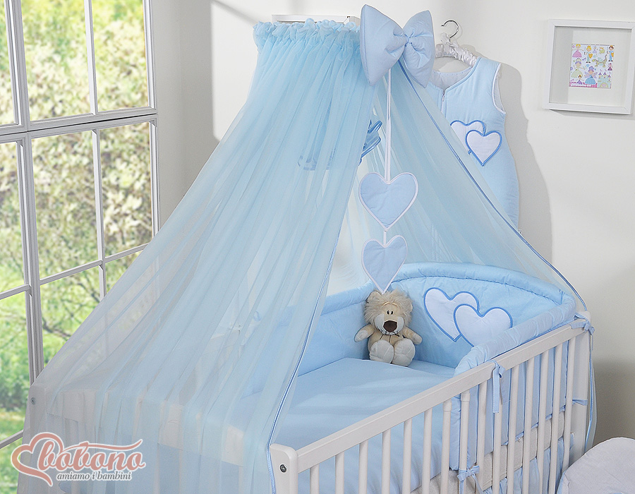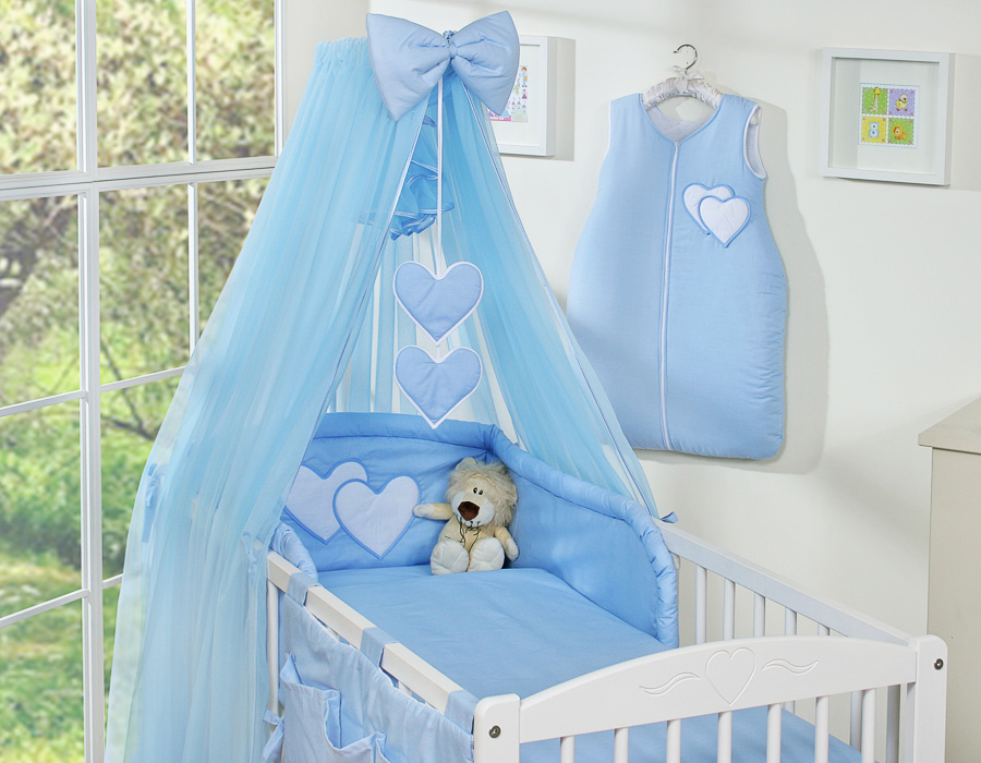 Bébé chambre » Linge de lit bébé » Linge de lit bébé Cœurs » Linge de lit bébé 120cm Cœurs » Ensemble de linge de lit 7 pcs avec moustiquaire » Ensemble de Linge de Lit pour Bébé 7 pcs avec Ciel Bleu Cœurs