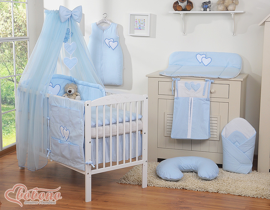 Ensemble de linge de lit pour bébé 7 pcs avec moustiquaire de lit bébé - Collection Cœurs