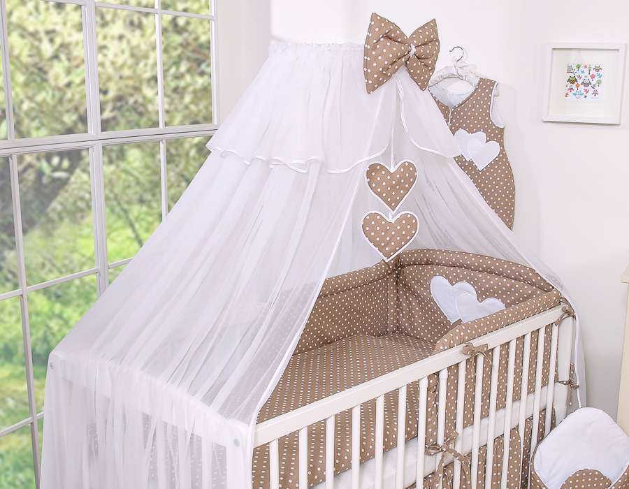 Bébé chambre » Linge de lit bébé » Linge de lit bébé Cœurs » Linge de lit bébé 120cm Cœurs » Ensemble de linge de lit 7 pcs avec moustiquaire » Ensemble de Linge de Lit pour Bébé 7 pcs avec Ciel Brun à Pois Cœurs