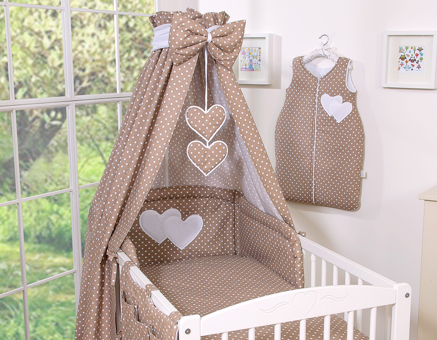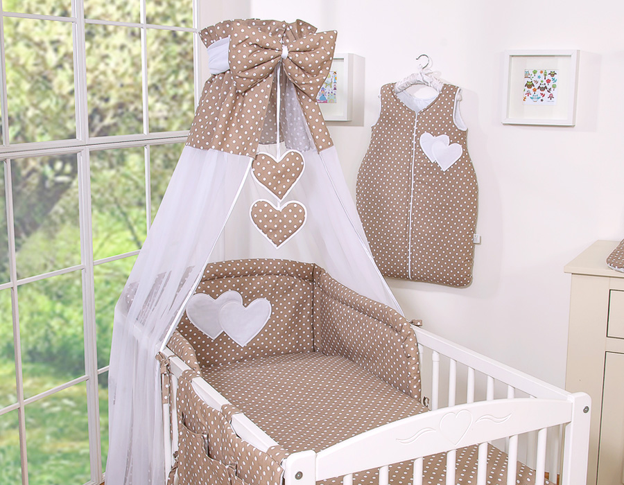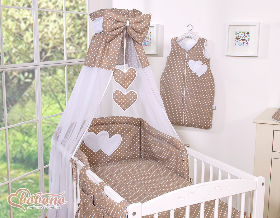 Ensemble de Linge de Lit pour Bébé 7 pcs avec Ciel Brun Cœurs