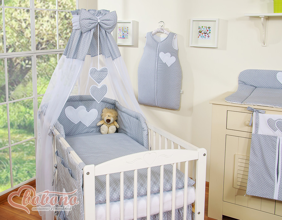 Bébé chambre » Linge de lit bébé » Linge de lit bébé Cœurs » Linge de lit bébé 140cm Cœurs » Ensemble de linge de lit 7 pcs avec ciel » Ensemble de Linge de Lit pour Bébé 7 pcs avec Ciel Gris à Pois Cœurs