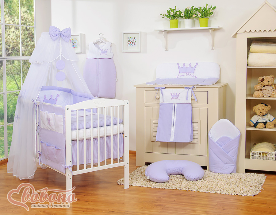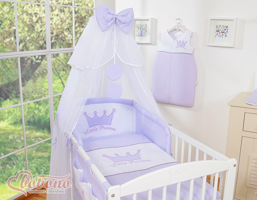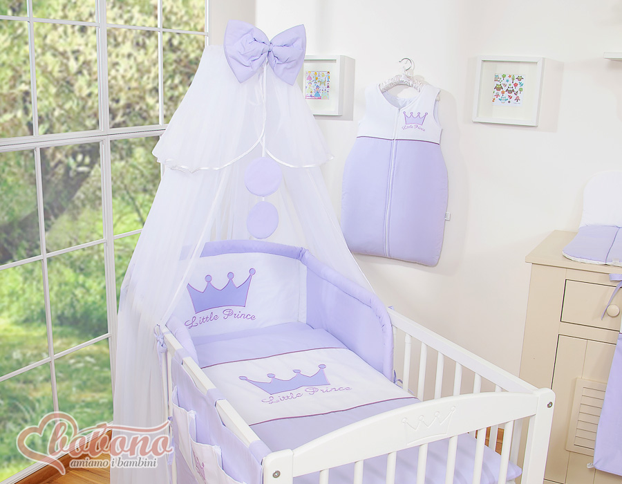Bébé chambre » Linge de lit bébé » Linge de lit Little Prince / Princess » Linge de lit 120cm » 7pcs Ensemble Linge avec Moustiquaire et Tour de Lit » Ensemble de Linge de Lit pour Bébé 7 pcs avec Ciel Lila Prince / Princess