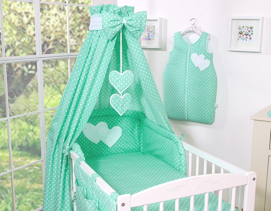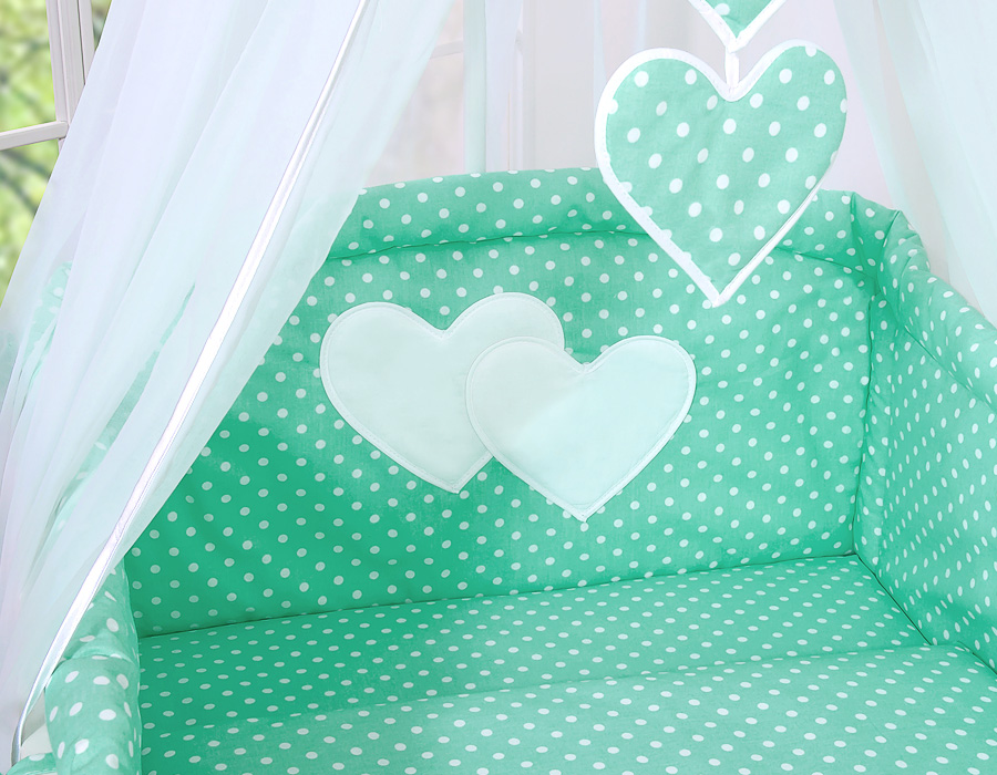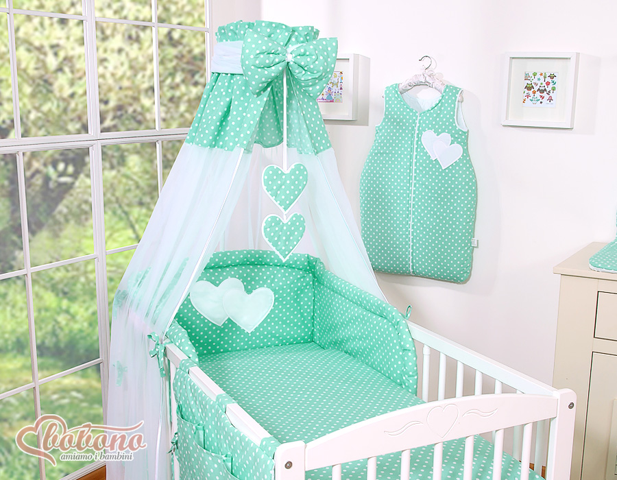 Ensemble de Linge de Lit pour Bébé 7 pcs avec Ciel Menthe à Pois Cœurs