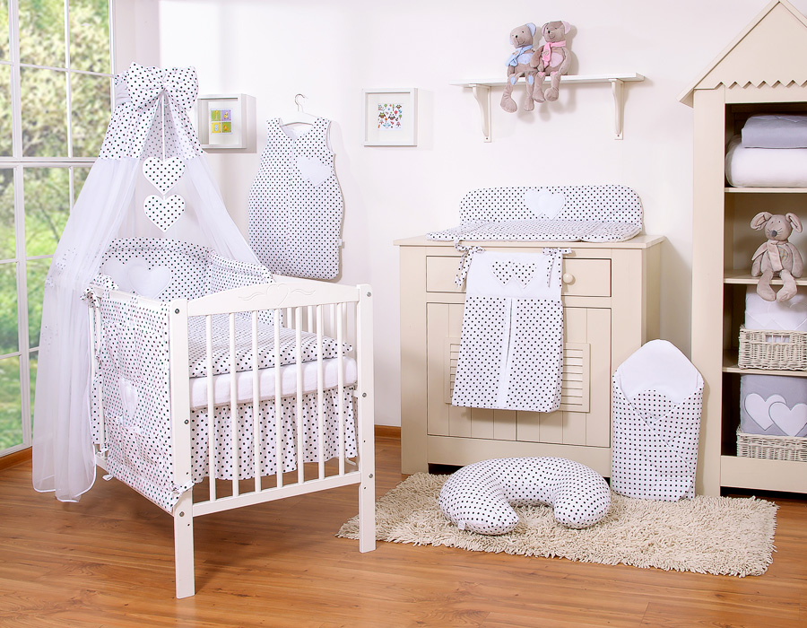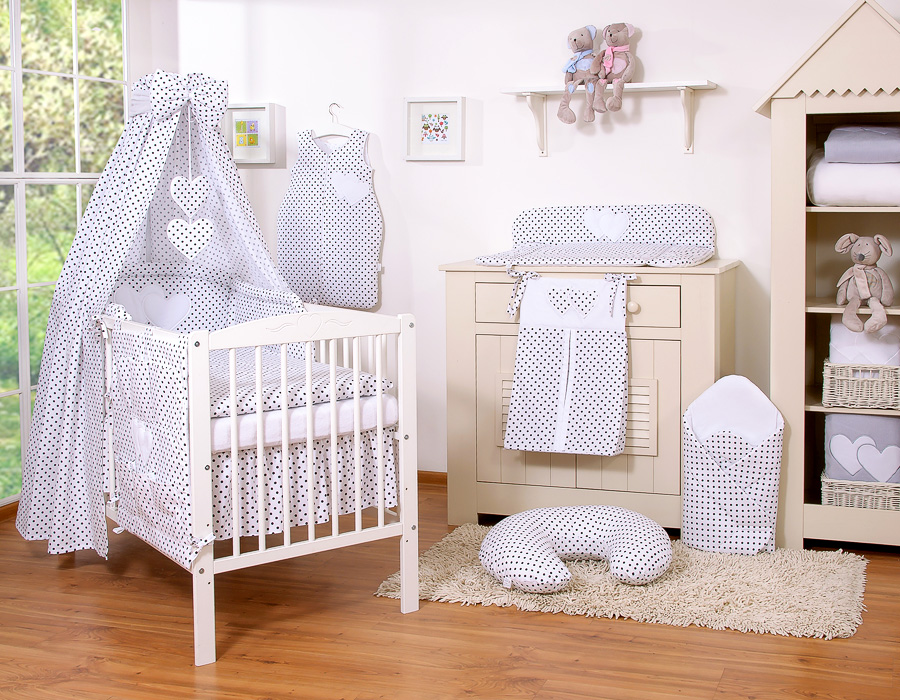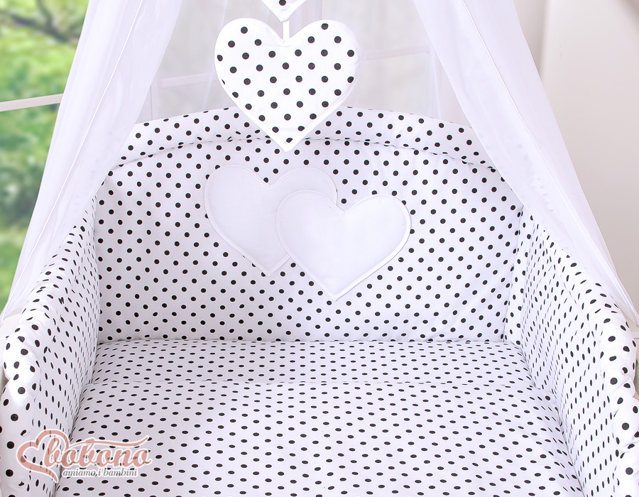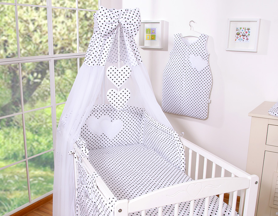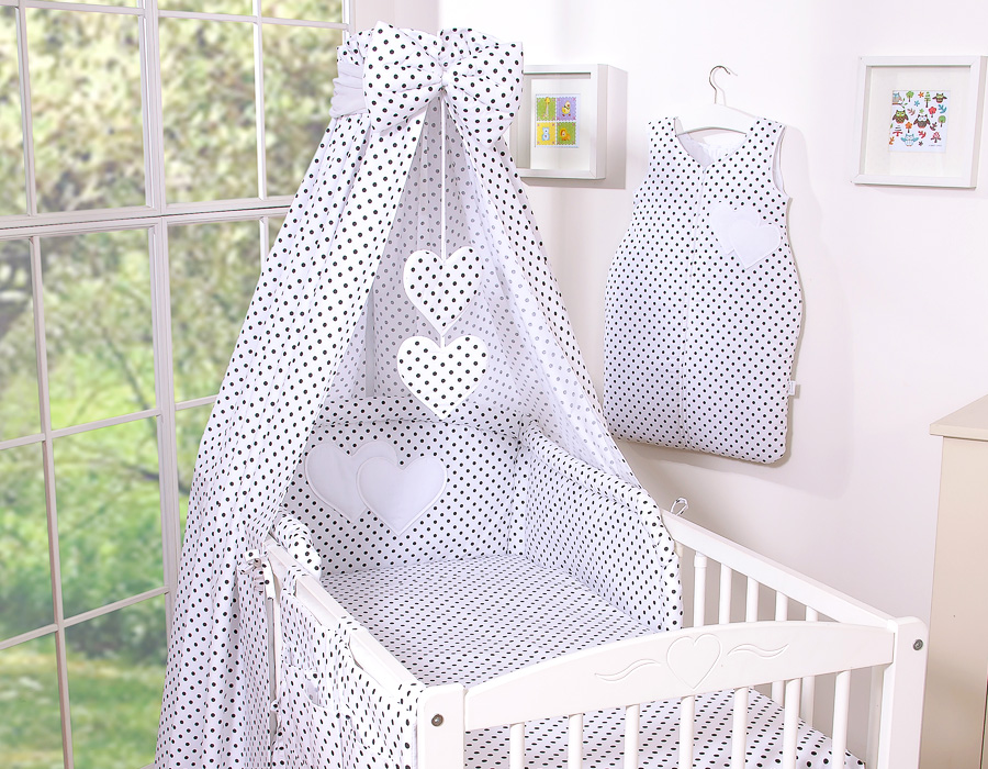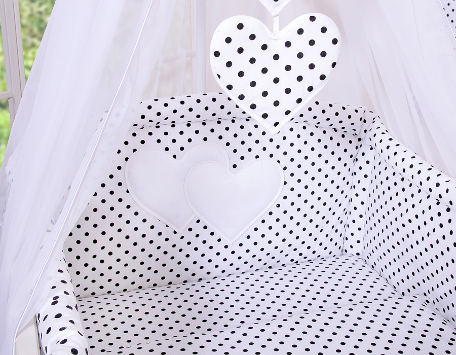 Bébé chambre » Linge de lit bébé » Linge de lit bébé Cœurs » Linge de lit bébé 120cm Cœurs » Ensemble de linge de lit 7 pcs avec ciel » Ensemble de Linge de Lit pour Bébé 7 pcs avec Ciel Noir à Pois Cœurs