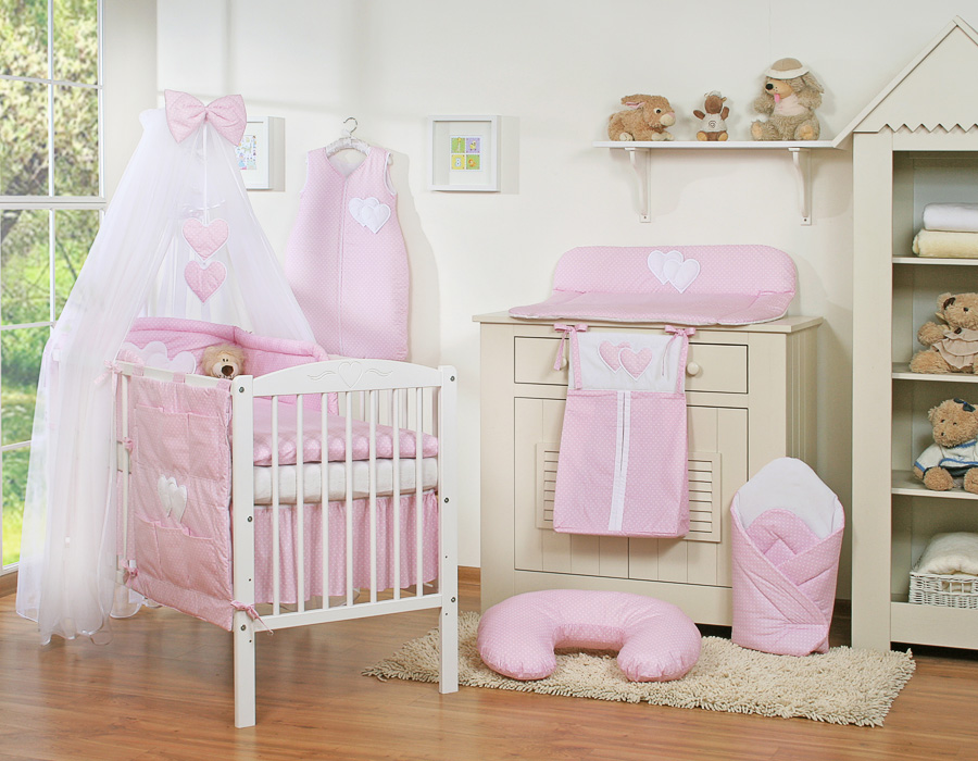 Bébé chambre » Linge de lit bébé » Linge de lit bébé Cœurs » Linge de lit bébé 120cm Cœurs » Ensemble de linge de lit 7 pcs avec moustiquaire » Ensemble de Linge de Lit pour Bébé 7 pcs avec Ciel Rose à Pois Cœurs