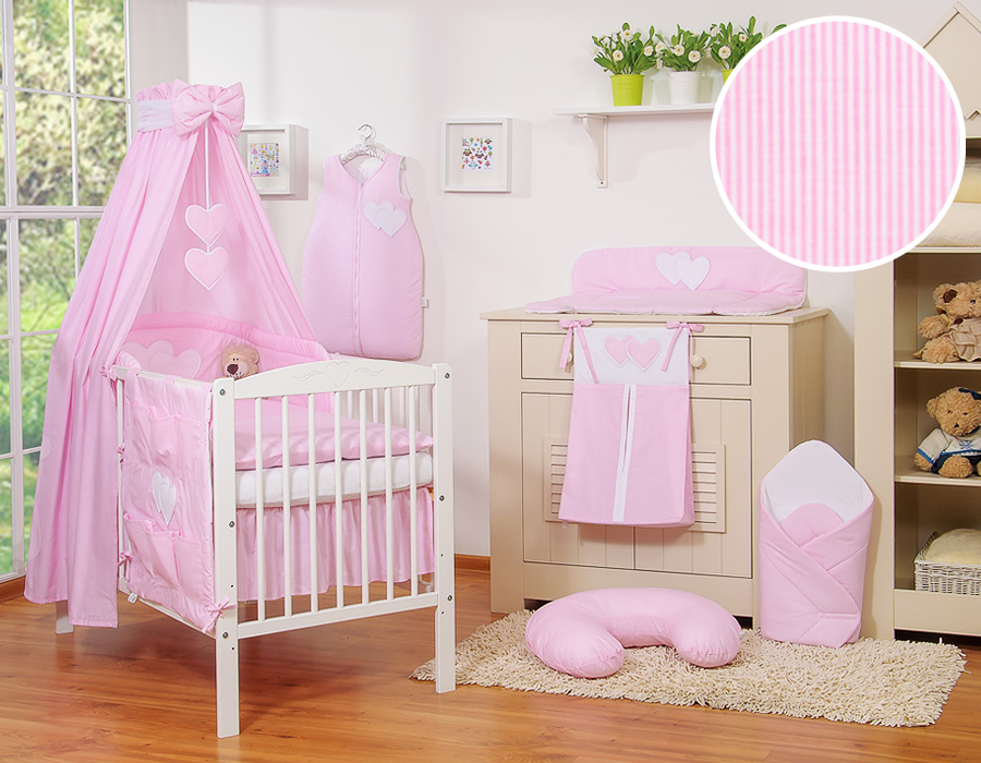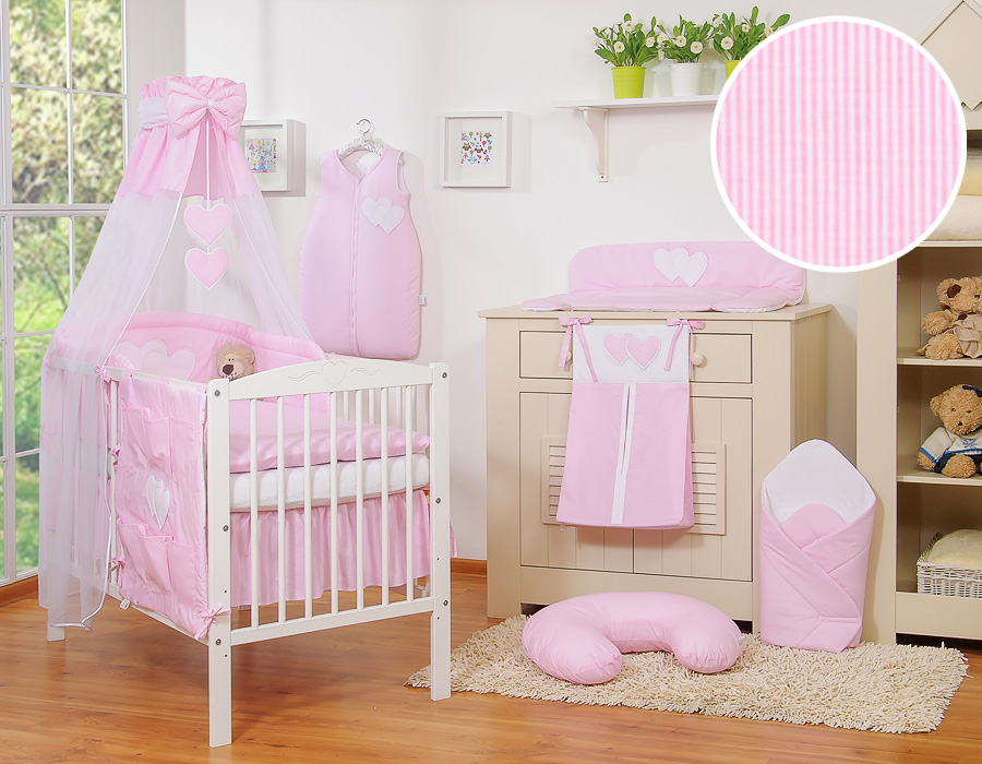 Bébé chambre » Linge de lit bébé » Linge de lit bébé Cœurs » Linge de lit bébé 120cm Cœurs » Ensemble de linge de lit 7 pcs avec ciel » Ensemble de Linge de Lit pour Bébé 7 pcs avec Ciel Rose Rayures Cœurs