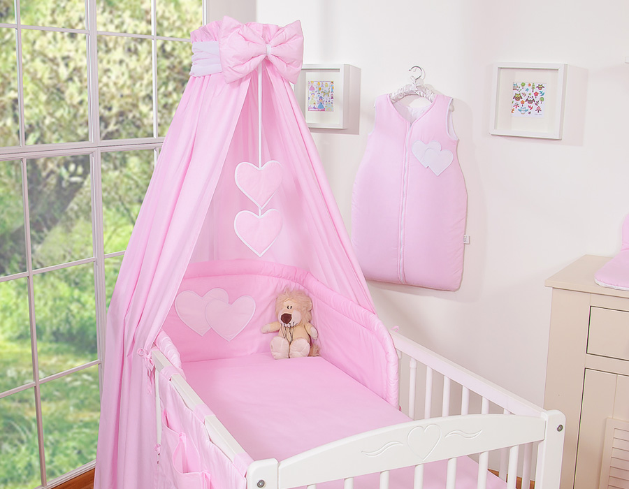 Ensemble de linge de lit pour bébé 7 pcs avec ciel de lit- Collection Cœurs