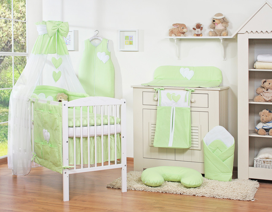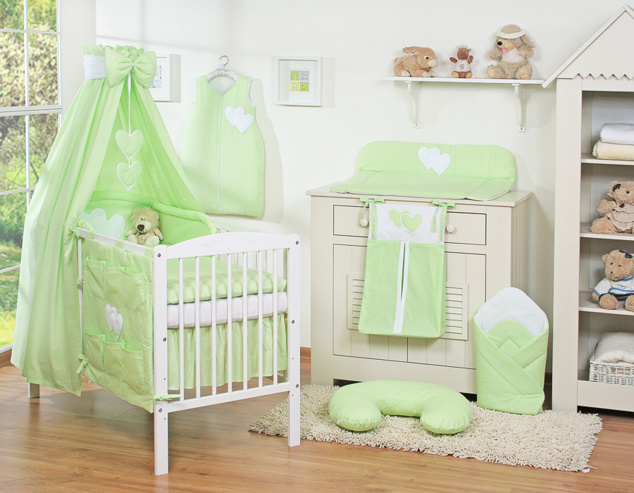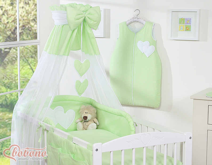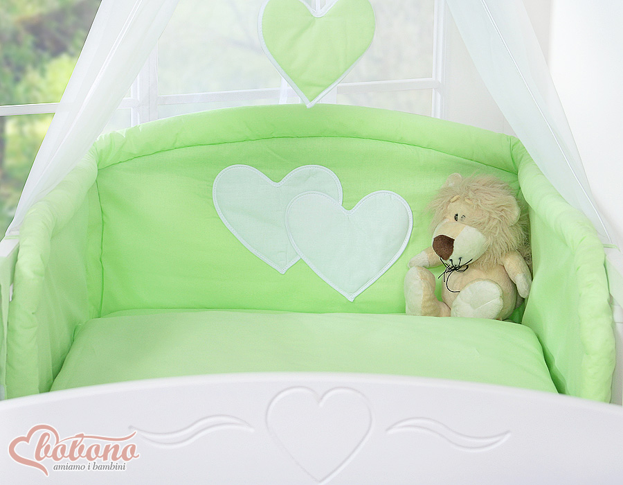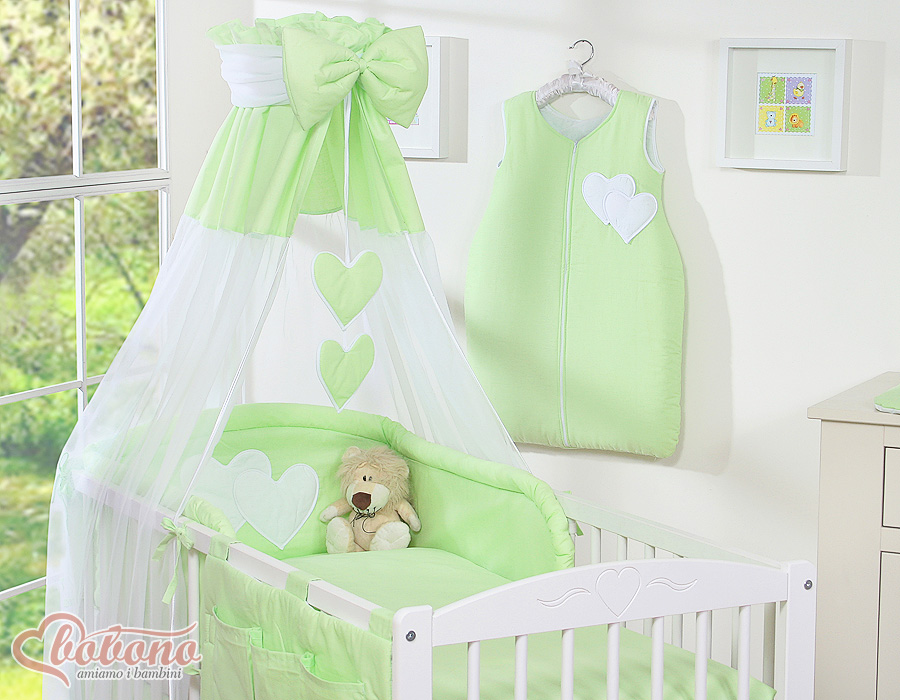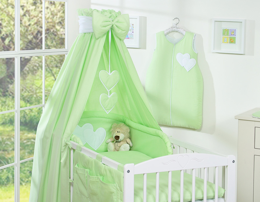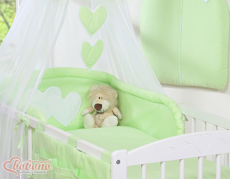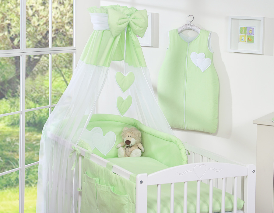 Bébé chambre » Linge de lit bébé » Linge de lit bébé Cœurs » Linge de lit bébé 140cm Cœurs » Ensemble de linge de lit 7 pcs avec ciel » Ensemble de Linge de Lit pour Bébé 7 pcs avec Ciel Vert Cœurs