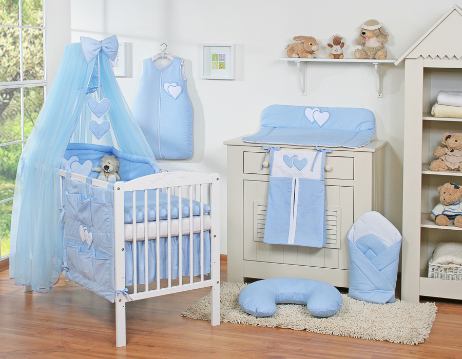 Bébé chambre » Linge de lit bébé » Linge de lit bébé Cœurs » Linge de lit bébé 140cm Cœurs » Ensemble de Linge de Lit pour Bébé 7 pcs avec Moustiquaire » Ensemble de Linge de Lit pour Bébé 7 pcs avec Moustiquaire Bleu Cœurs