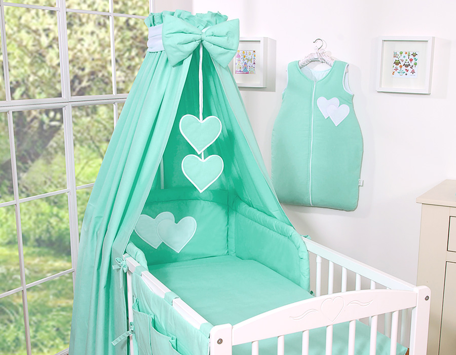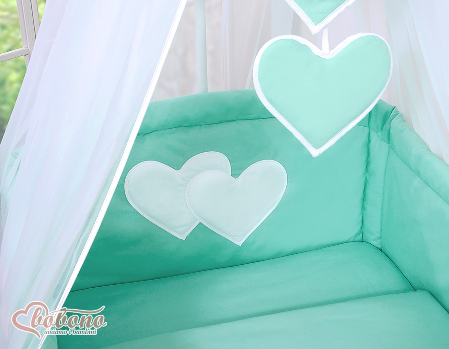 Bébé chambre » Linge de lit bébé » Linge de lit bébé Cœurs » Linge de lit bébé 140cm Cœurs » Ensemble de linge de lit 7 pcs avec ciel » Ensemble de Linge pour Lit Bébé 7 pcs avec Ciel Menthe Cœurs