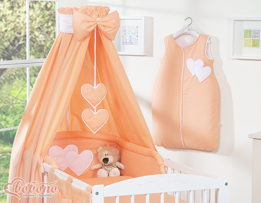 Bébé chambre » Linge de lit bébé » Linge de lit bébé Cœurs » Linge de lit bébé 140cm Cœurs » Ensemble de linge de lit 7 pcs avec ciel » Ensemble de Linge pour Lit Bébé 7 pcs avec Ciel Pêche Cœurs