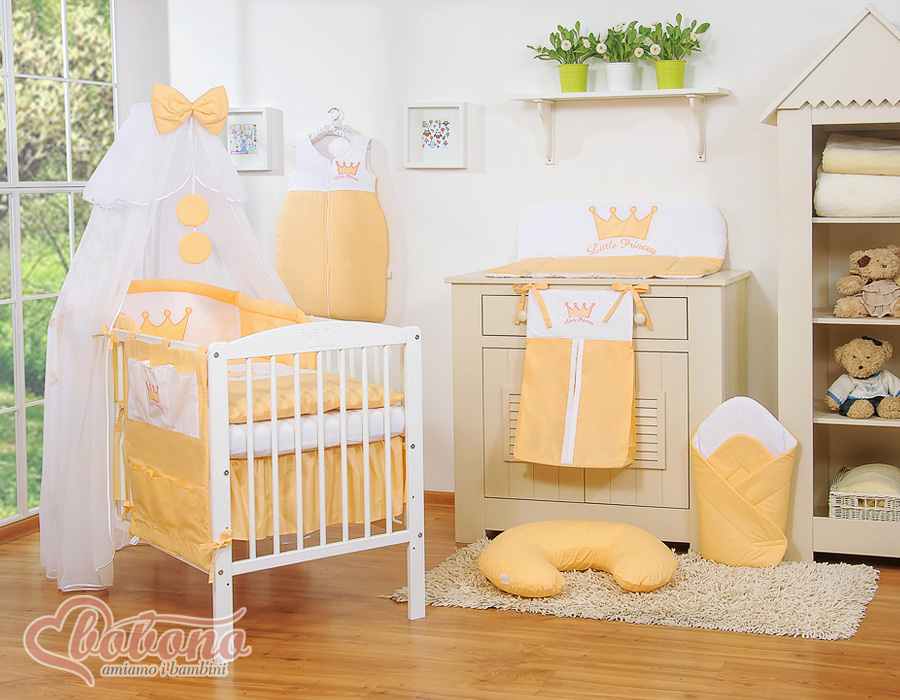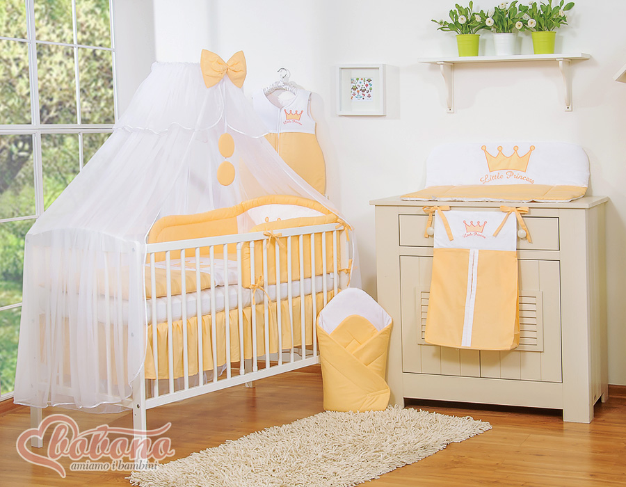 Bébé chambre » Linge de lit bébé » Linge de lit Little Prince / Princess » Linge de lit 120cm » 7pcs Ensemble Linge avec Moustiquaire et Tour de Lit » Ensemble de Linge pour Lit Bébé 7 pcs avec Ciel Pêche Prince / Princess