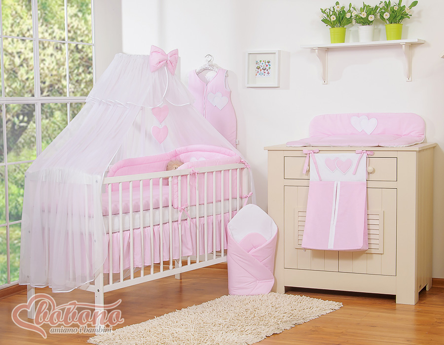 Ensemble de linge de lit pour bébé 7 pcs avec moustiquaire de lit bébé - Collection Cœurs
