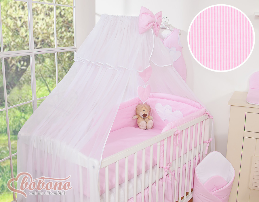 Bébé chambre » Linge de lit bébé » Linge de lit bébé Cœurs » Linge de lit bébé 120cm Cœurs » Ensemble de linge de lit 7 pcs avec moustiquaire » Ensemble de Linge pour Lit Bébé 7 pcs avec Ciel Rose Rayures Cœurs