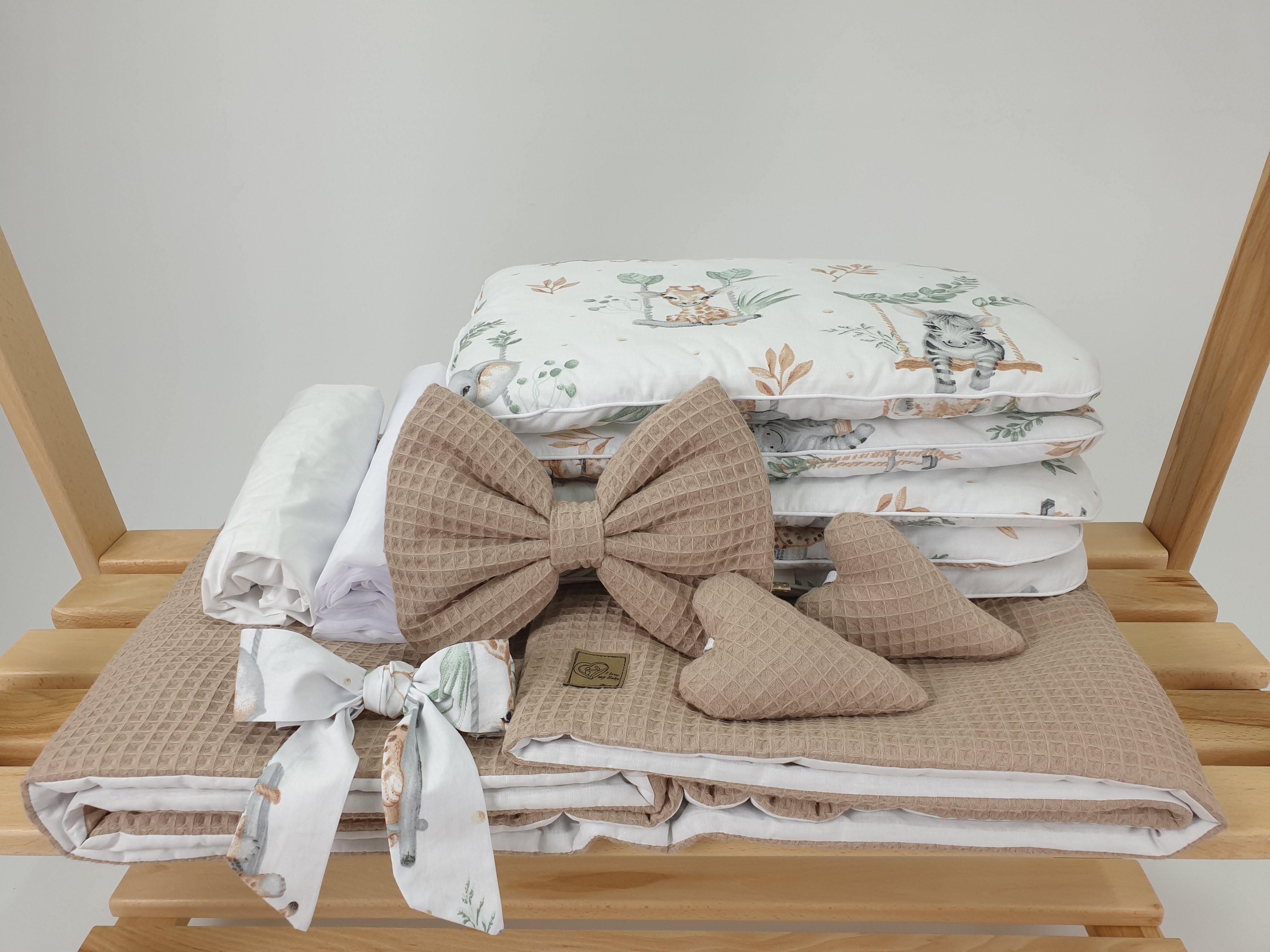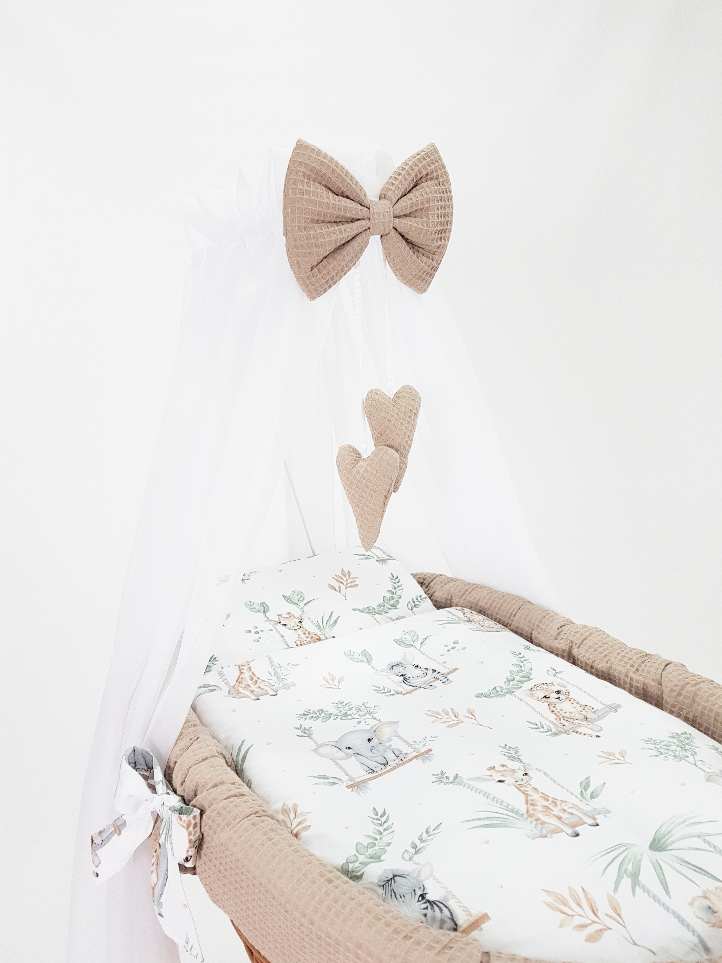 Offrez à votre bébé le plus grand confort avec ce set complet 5 pièces en taille XXL, conçu pour les très grands berceaux en osier. Grâce à son matériau en coton gaufré (nid d’abeille) de haute qualité, ce habillage combine élégance, douceur et fonctionnalité. La version XXL inclut un ouverture discrète pour l’anse de transport du panier - idéal pour les modèles haut de gamme.
