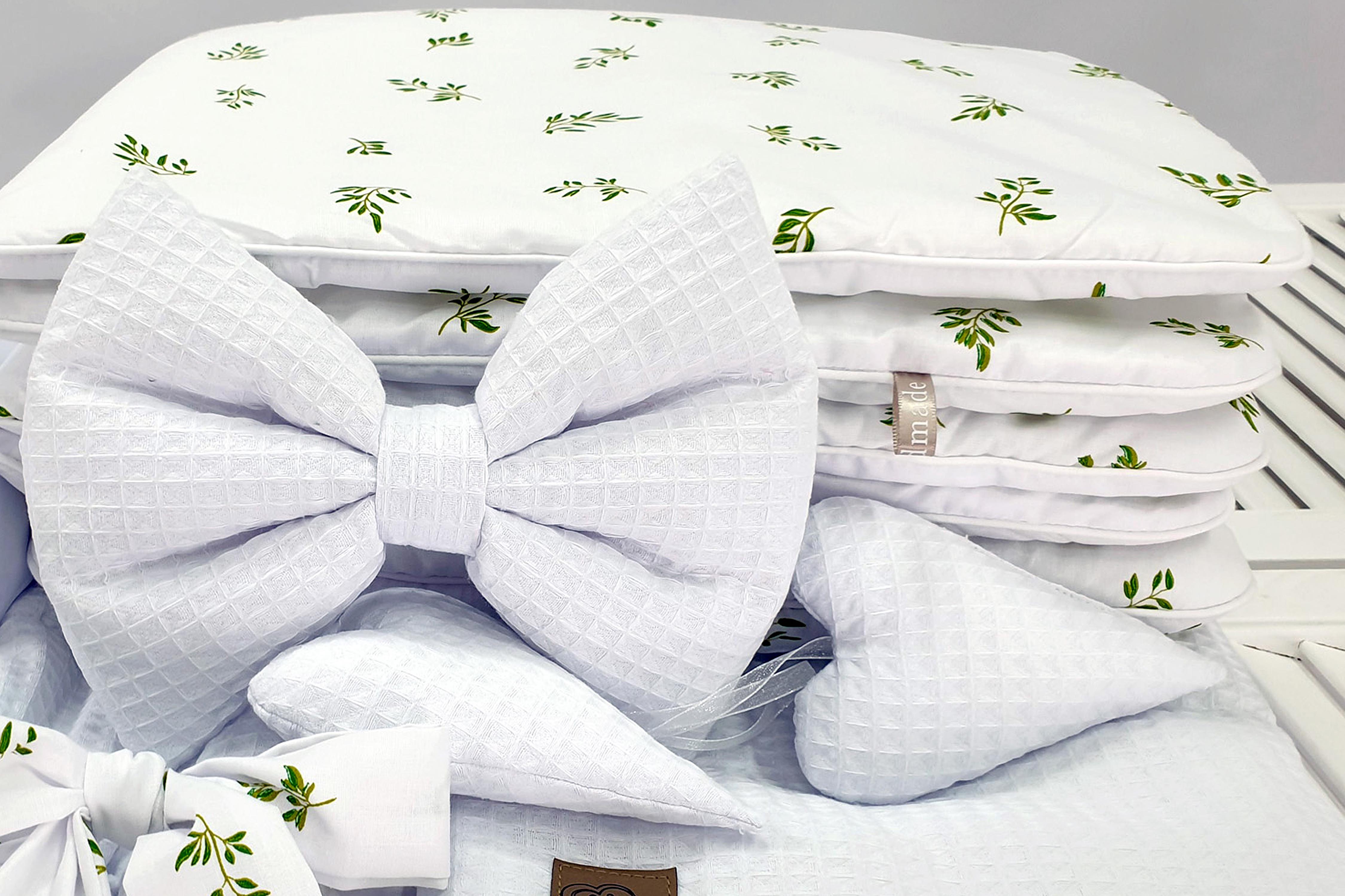 Offrez à votre bébé un véritable cocon de douceur avec cet habillage complet pour berceau en osier signé KleinBaby. Conçu pour les couffins traditionnels en osier, ce set 5-pièces allie sécurité, confort et esthétisme : tissu en coton gaufré (nid d'abeille) élégant, imprimé tendre de petites oies et finitions soignées pour une chambre apaisante.