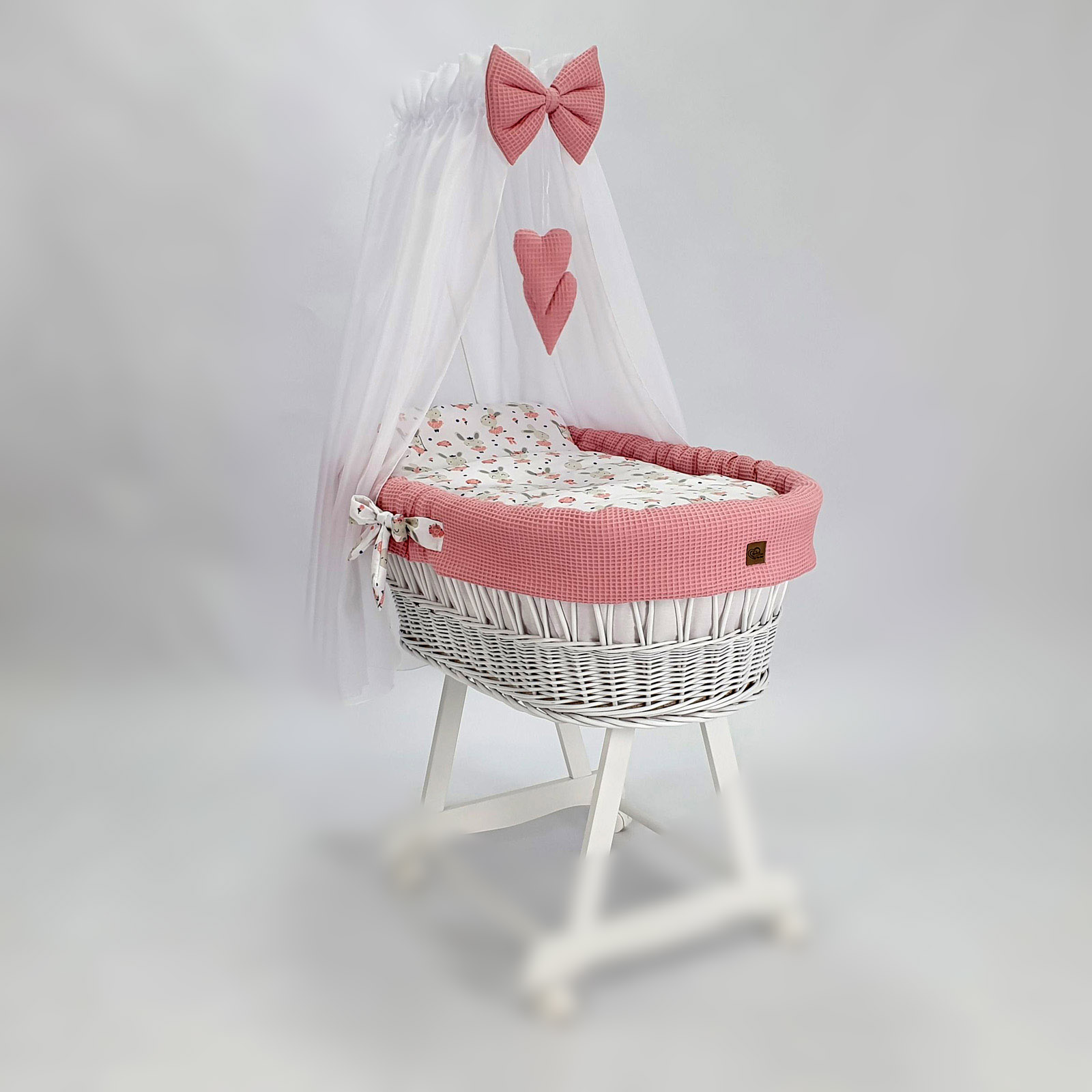 Habillage complet pour berceau en osier rose poudré (grande taille XL)