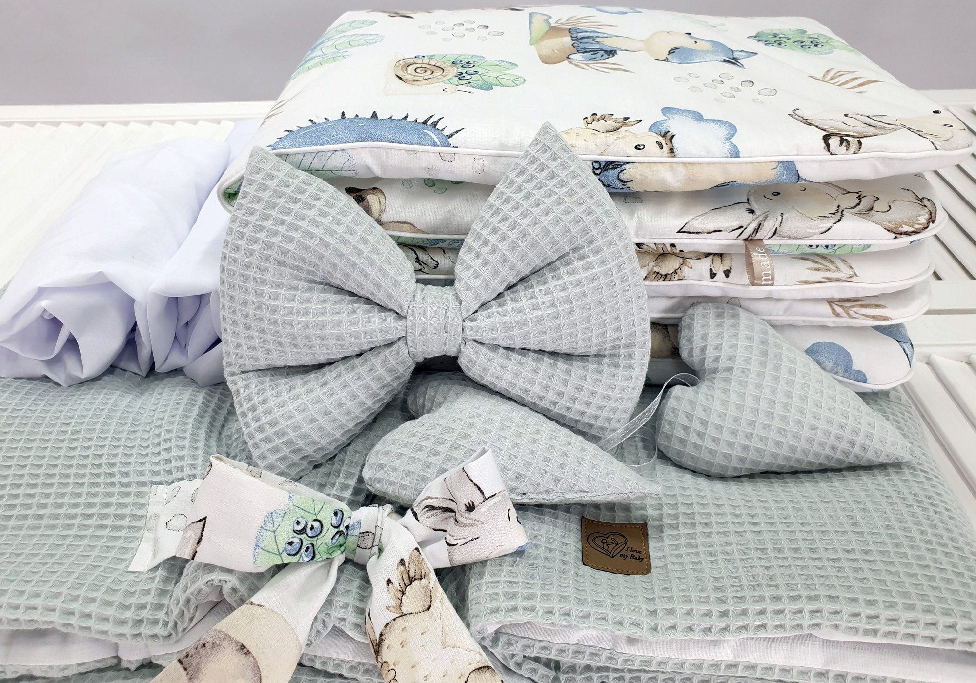 Offrez à votre bébé le plus grand confort avec ce set complet 5 pièces en taille XXL, conçu pour les très grands berceaux en osier. Grâce à son matériau en coton gaufré (nid d’abeille) de haute qualité, ce habillage combine élégance, douceur et fonctionnalité. La version XXL inclut un ouverture discrète pour l’anse de transport du panier - idéal pour les modèles haut de gamme.