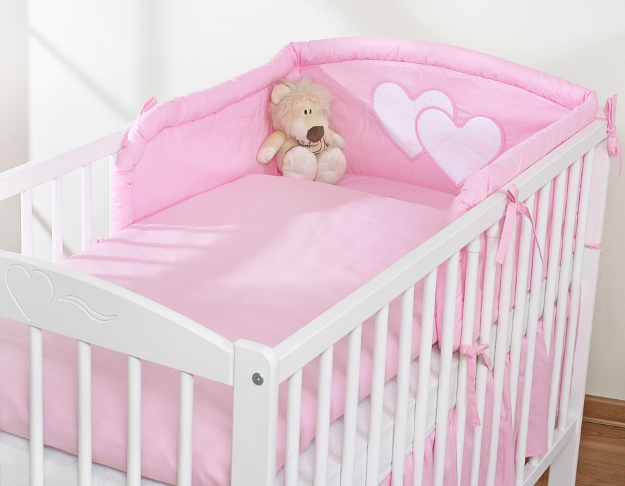 Bébé chambre » Linge de lit bébé » Linge de lit bébé Cœurs » Linge de lit bébé 120cm Cœurs » Ensemble de linge de lit 3 pcs » Housse d'oreiller et couette et Tour de lit bébé