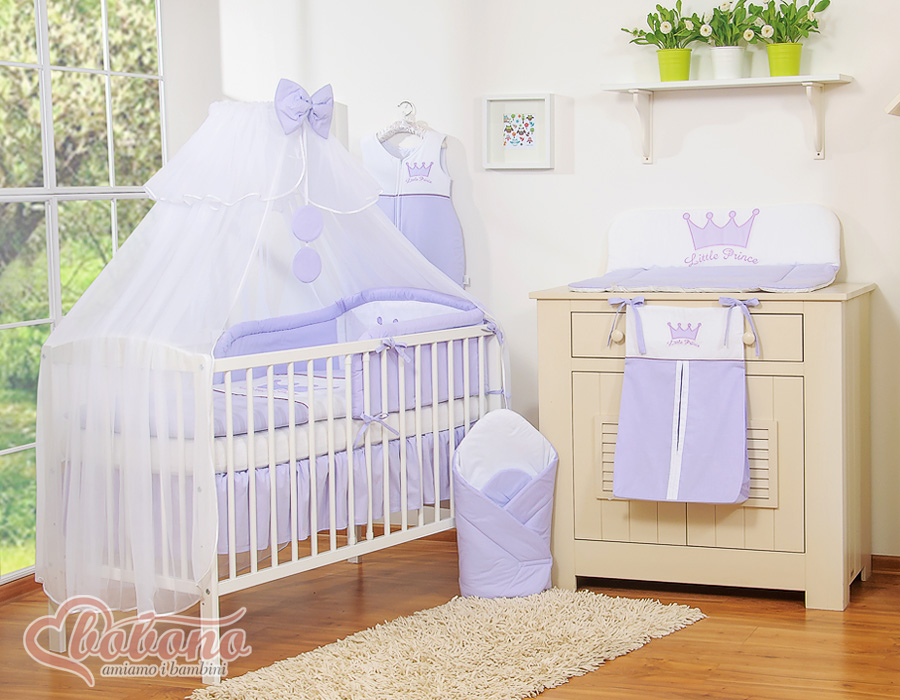 Bébé chambre » Linge de lit bébé » Linge de lit Little Prince / Princess » Linge de lit 120cm » Ensemble de linge de lit 11 pcs avec moustiquaire » Linge de Lit Bébé Parure 11 pcs avec Moustiquaire Lila Prince / Princess