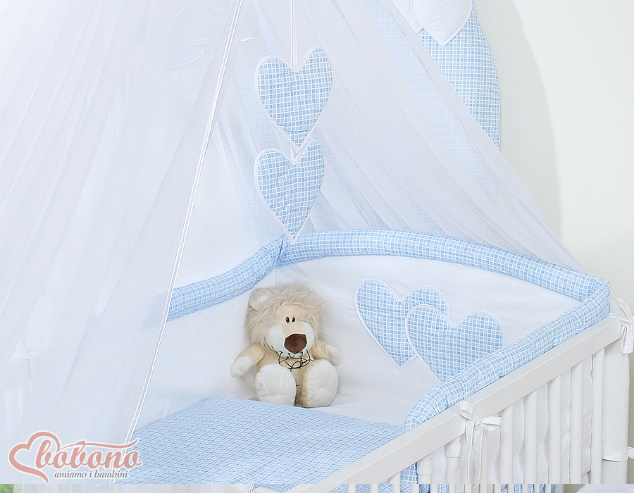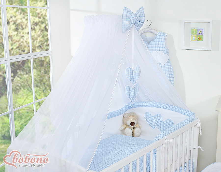 Bébé chambre » Linge de lit bébé » Linge de lit bébé Cœurs » Linge de lit bébé 140cm Cœurs » Parure de linge de lit 11 pcs avec moustiquaire » Linge de Lit Bébé Parure 11 pcs Moustiquaire Bleu à Carreaux Cœurs