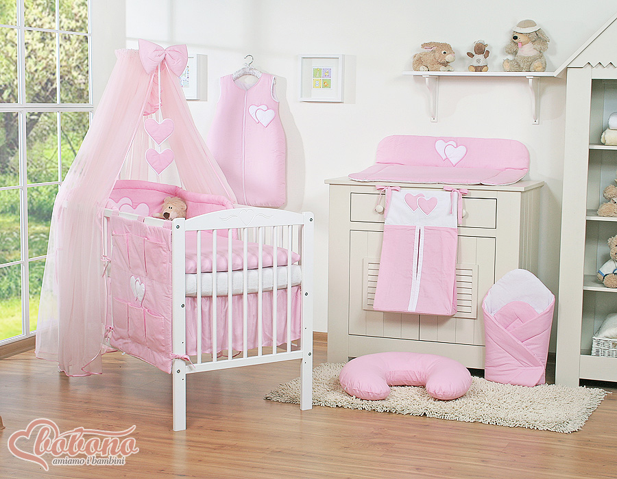 Ensemble de linge de lit pour bébé 11 pcs avec moustiquaire - Collection Cœurs