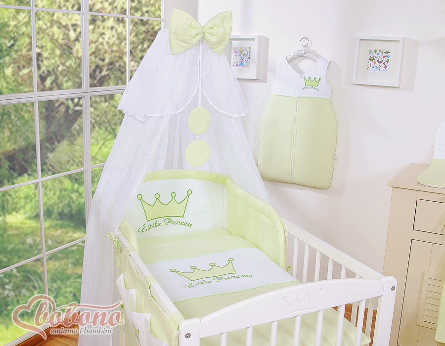 Bébé chambre » Linge de lit bébé » Linge de lit Little Prince / Princess » Linge de lit 140cm » Ensemble de linge 11 pcs Moustiquaire de lit » Linge de Lit Bébé Parure 11 pcs Moustiquaire Vert Prince / Princess