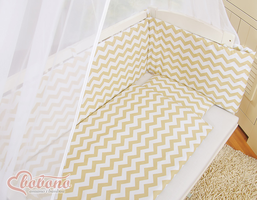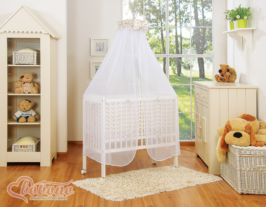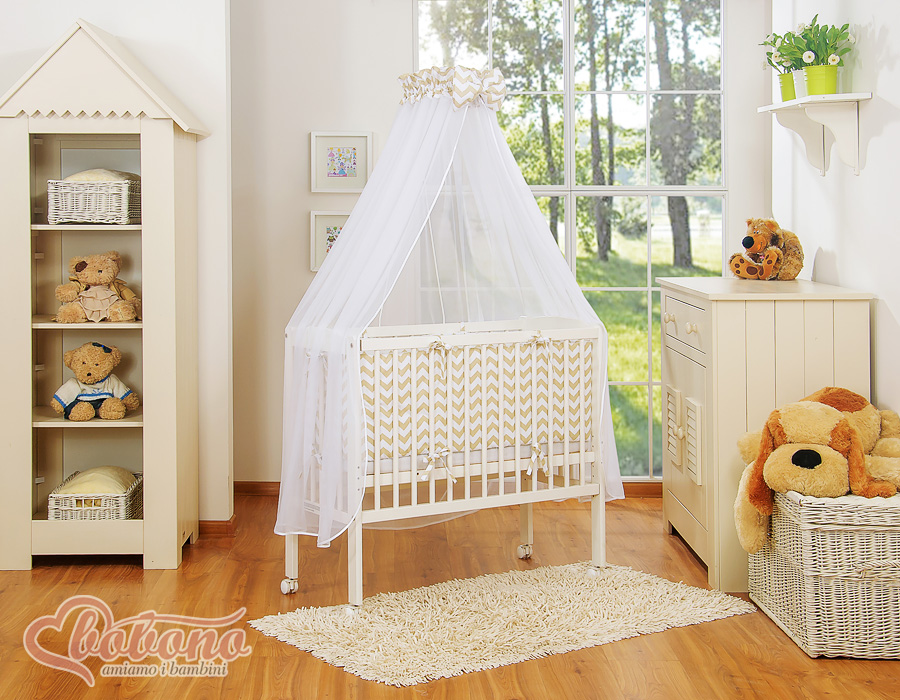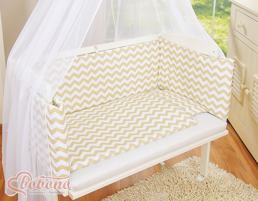 Bébé chambre » Lits bébé 120x60 cm » Lits de cododo » Lits de cododo » Lit Cododo avec Ciel Matelas et Linge Complet Beige Chevron