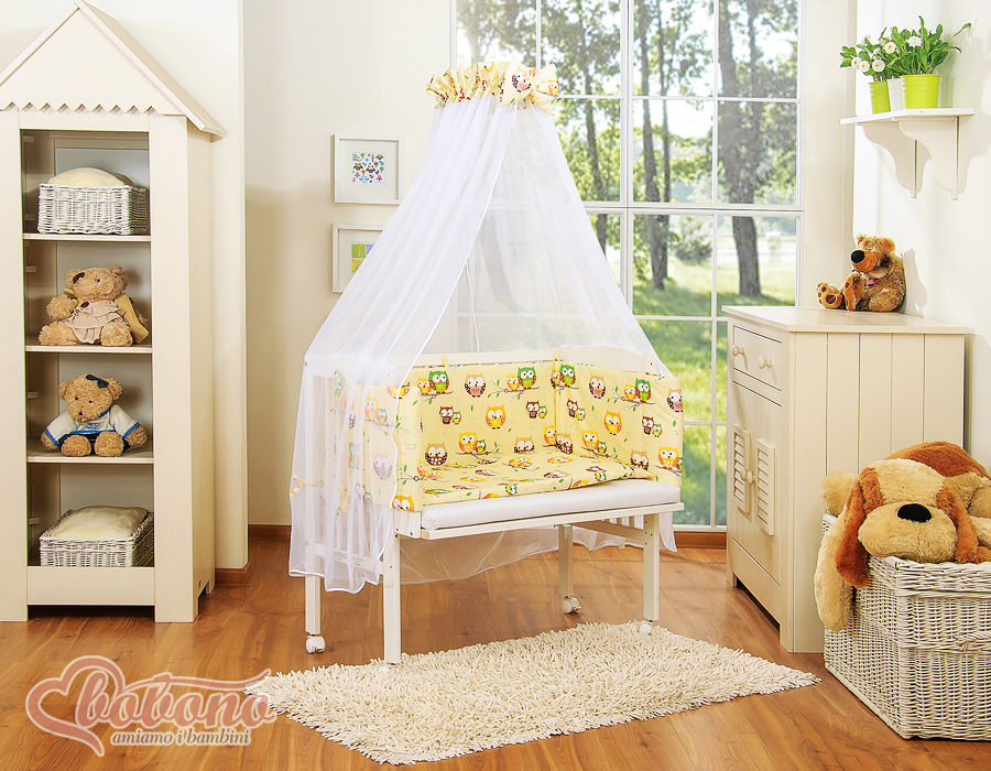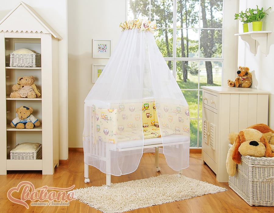 Bébé chambre » Lits bébé 120x60 cm » Lits de cododo » Lits de cododo » Lit Cododo avec Ciel Matelas et Linge Complet Crème Hiboux