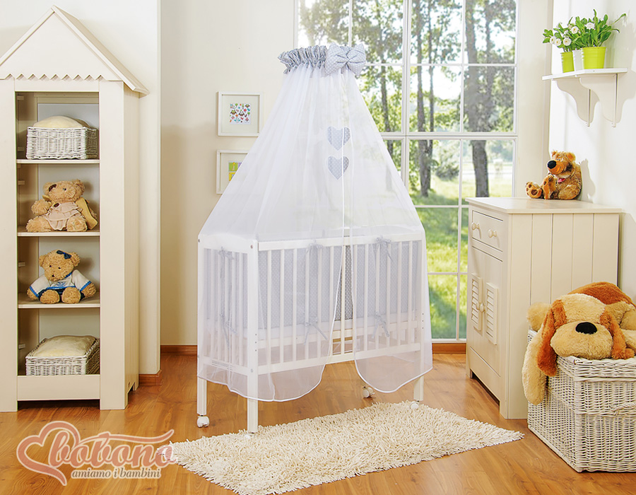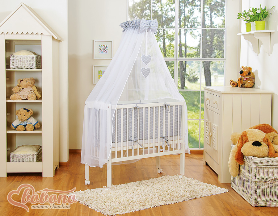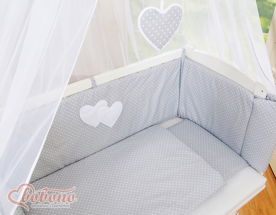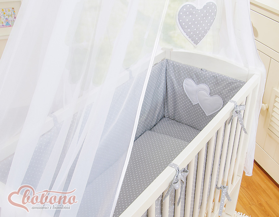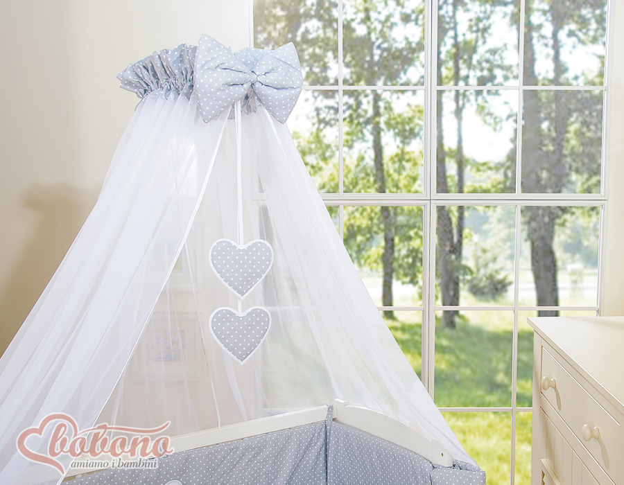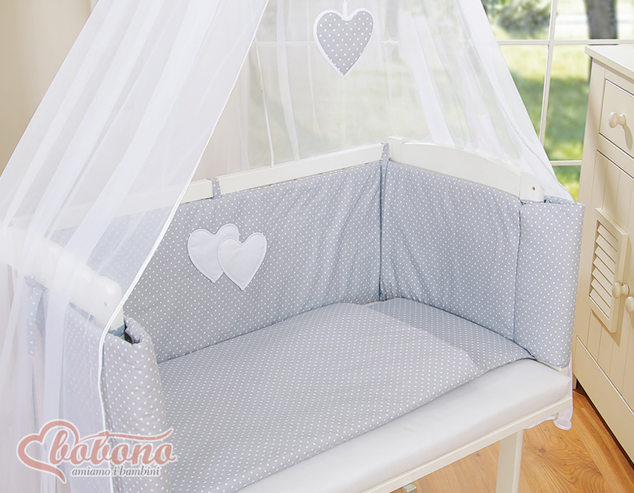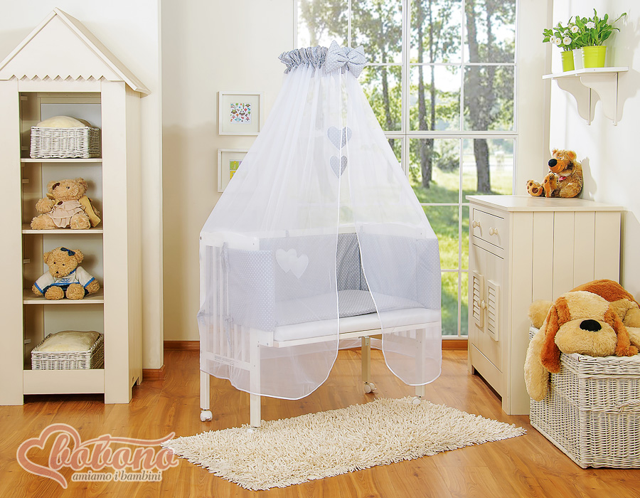 Bébé chambre » Lits bébé 120x60 cm » Lits de cododo » Lits de cododo » Lit Cododo avec Ciel Matelas et Linge Complet Gris à Pois Cœurs