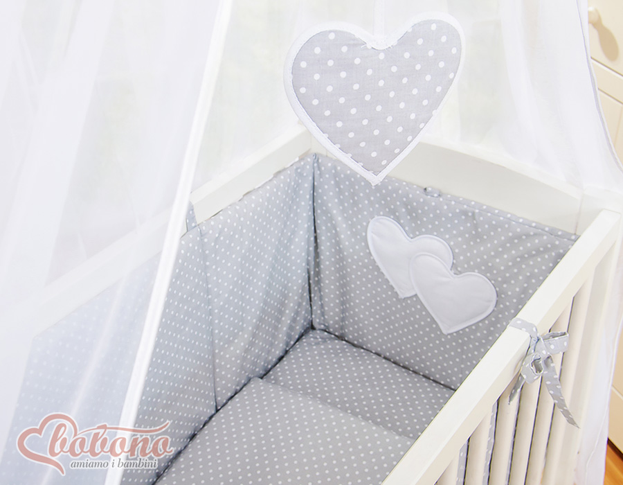 Lit Cododo avec Ciel Matelas et Linge Complet Gris à Pois Cœurs