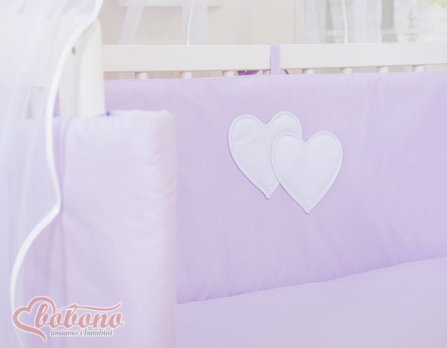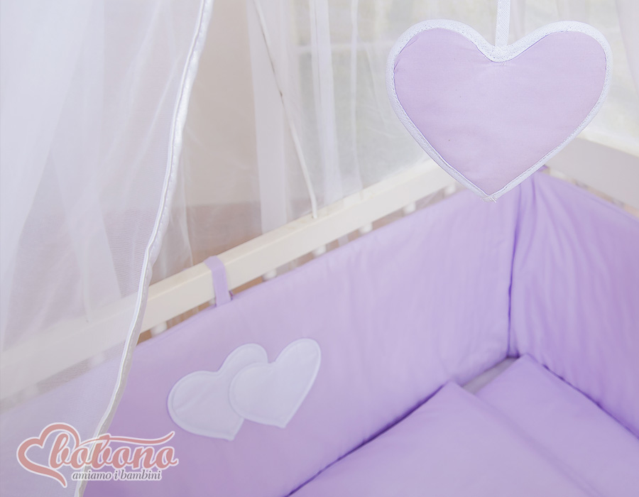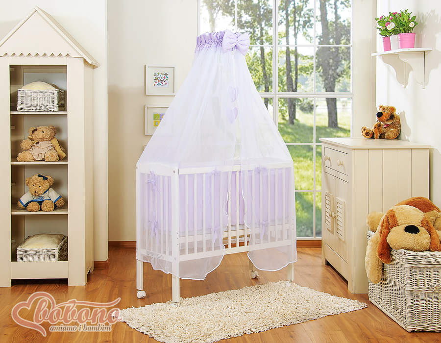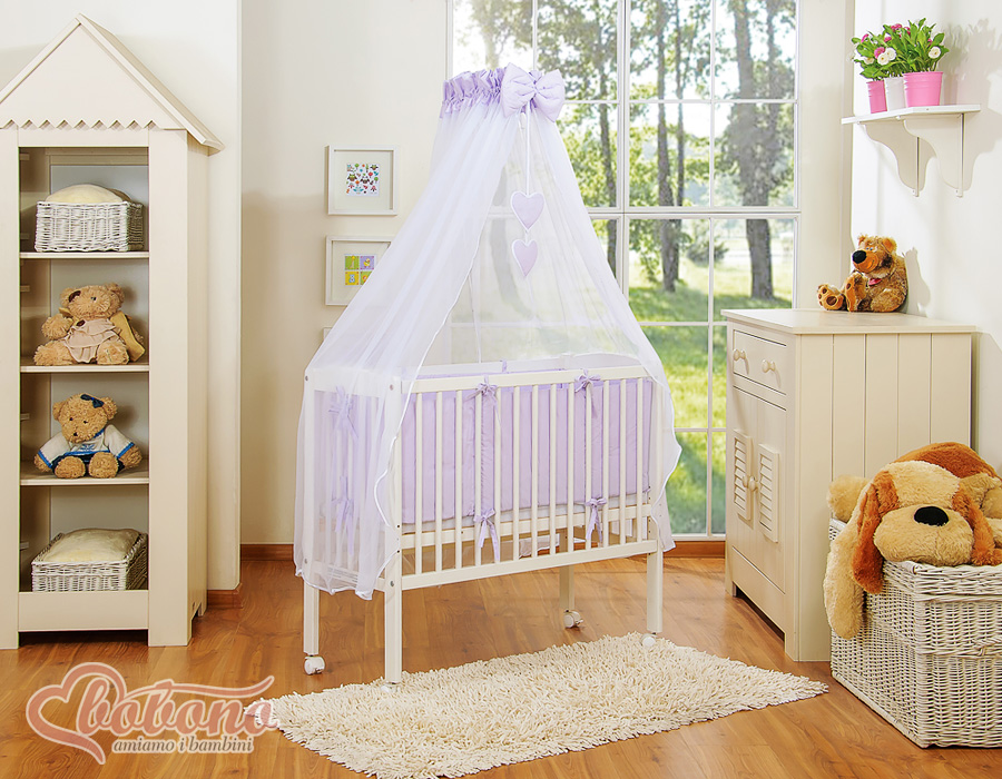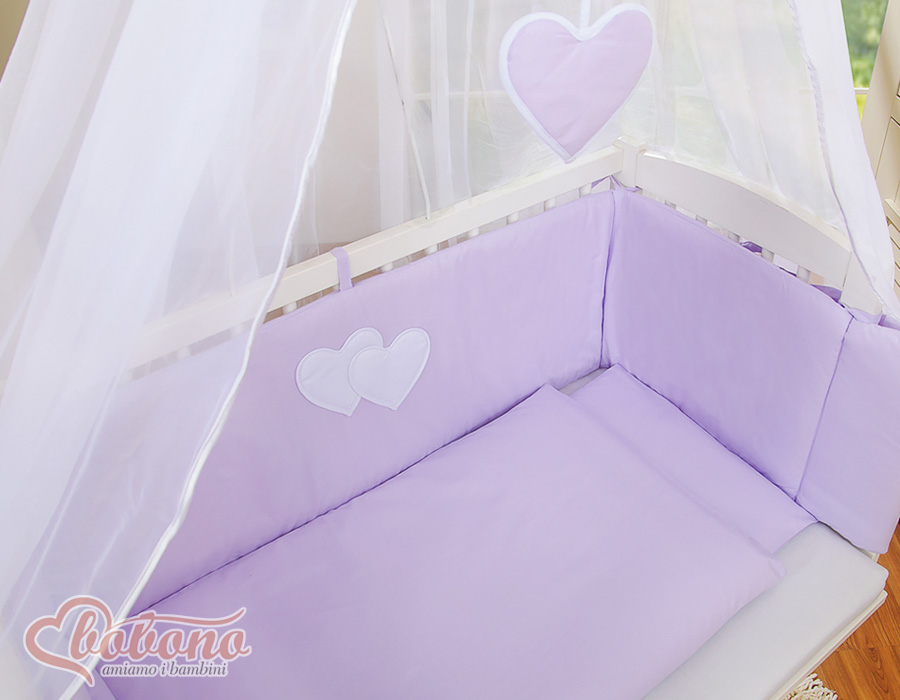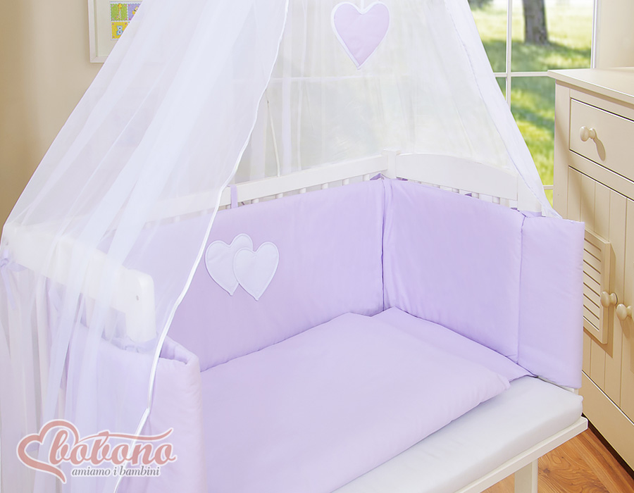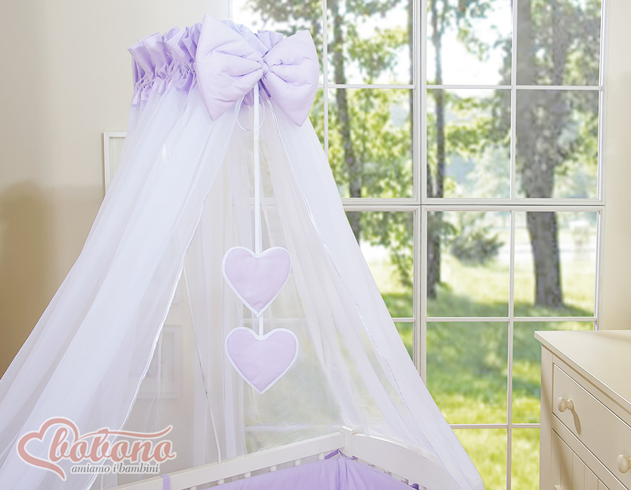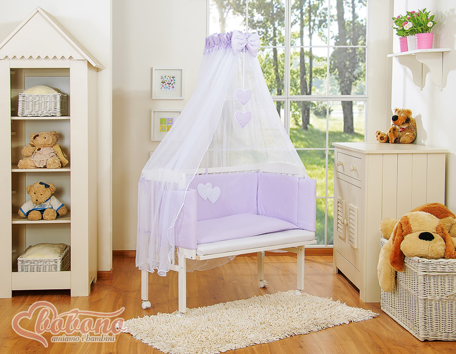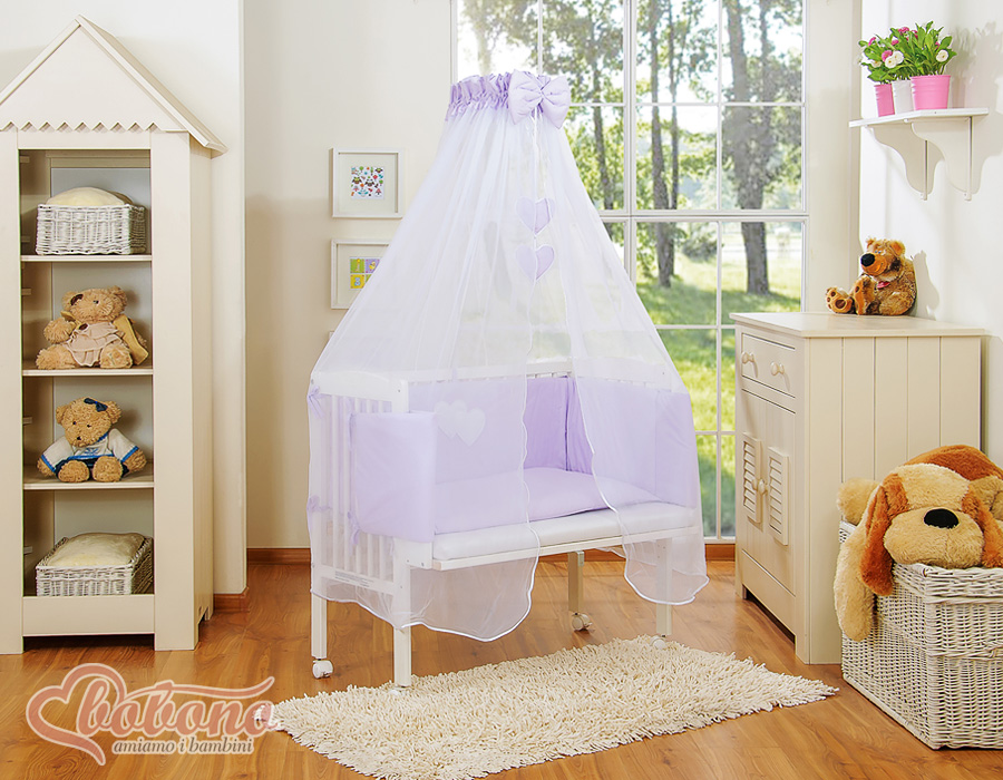 Bébé chambre » Lits bébé 120x60 cm » Lits de cododo » Lits de cododo » Lit Cododo avec Ciel Matelas et Linge Complet Lila Cœurs