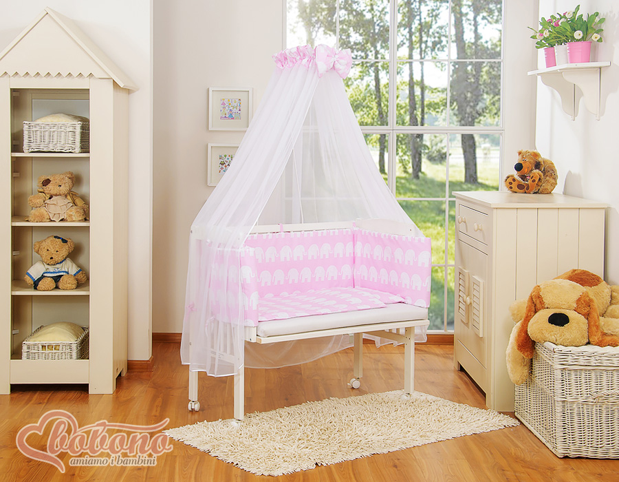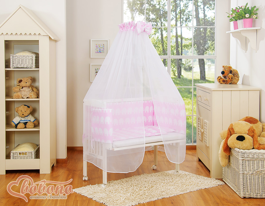 Bébé chambre » Lits bébé 120x60 cm » Lits de cododo » Lits de cododo » Lit Cododo avec Ciel Matelas et Linge Complet Rose